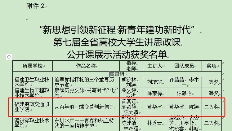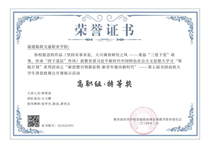 日前,根據(jù)教育部高校思政課教學(xué)指導(dǎo)委員會(huì)和福建省委教育工委的評(píng)審結(jié)果,我院選送的作品《堅(jiān)持實(shí)事求是,大興調(diào)查研究之風(fēng)——重溫“三進(jìn)下黨”故事,傳承“四下基層”作風(fēng)》榮獲第七屆全國高校大學(xué)生講思政課公開課展示活動(dòng)高職組特等獎(jiǎng),《從百年船廠蝶變看創(chuàng)新偉力》榮獲第七屆全省高校大學(xué)生講思政課公開課展示活動(dòng)高職組二等獎(jiǎng)。