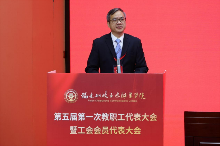 學(xué)院黨委副書記、院長(zhǎng)陳錦輝做學(xué)院工作報(bào)告。他在報(bào)告中回顧了學(xué)院過去六年的主要工作和取得的成績(jī),指出了當(dāng)前學(xué)院發(fā)展面臨的新形勢(shì)和新要求,明確了2025年學(xué)院主要工作和發(fā)展目標(biāo),重點(diǎn)部署了以下五個(gè)方面的工作:一是堅(jiān)持黨建引領(lǐng),把好辦學(xué)治校政治方向;二是堅(jiān)持立德樹人,深化人才培養(yǎng)質(zhì)量工程;三是堅(jiān)持科教融匯,提升服務(wù)經(jīng)濟(jì)社會(huì)發(fā)展能力;四是深化交流合作,打造船政交通文化品牌;五是對(duì)標(biāo)人民滿意,提升關(guān)鍵辦學(xué)能力。希望全體教職員工努力搶抓機(jī)遇,勇毅前行,不斷開創(chuàng)學(xué)院事業(yè)發(fā)展新局面,為奮力譜寫中國(guó)式現(xiàn)代化福建篇章,建成教育強(qiáng)省、交通強(qiáng)國(guó)先行區(qū)作出新的貢獻(xiàn)。