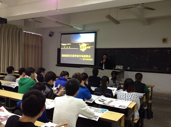 2014年4月23日在福建船政交通職業(yè)學(xué)院經(jīng)管大樓307教室為2014屆畢業(yè)生舉辦一場專場招聘會,由盛豐物流股份有限公司前來對交通經(jīng)濟系2014屆各專業(yè)應(yīng)屆畢業(yè)生進行招聘。