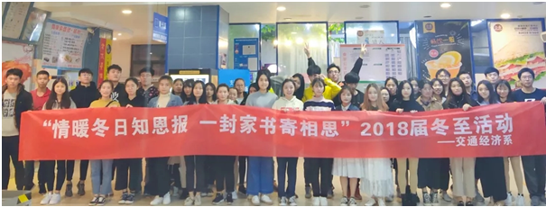 在中國傳統(tǒng)節(jié)日冬至來臨之際,為了豐富同學們的課余生活,加強同學之間的交流與團結(jié),讓遠離家人的同學們感受到來自交通經(jīng)濟系這個大家庭的溫暖,12月19日晚,我系在南區(qū)食堂三樓舉辦了冬至活動,為這個寒冷的冬天注入了融融暖意。