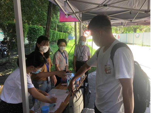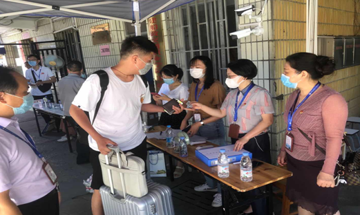 炎炎夏日,交通經(jīng)濟(jì)系全體輔導(dǎo)員老師們與共建支部的老師們輪流參與志愿工作,工作從校門口就開始了。他們一絲不茍地一步步引導(dǎo)每一位返校同學(xué)完成手部消毒、口罩更換、體溫檢測、健康碼核驗(yàn)等工作,這一切只為每一位同學(xué)的平安。