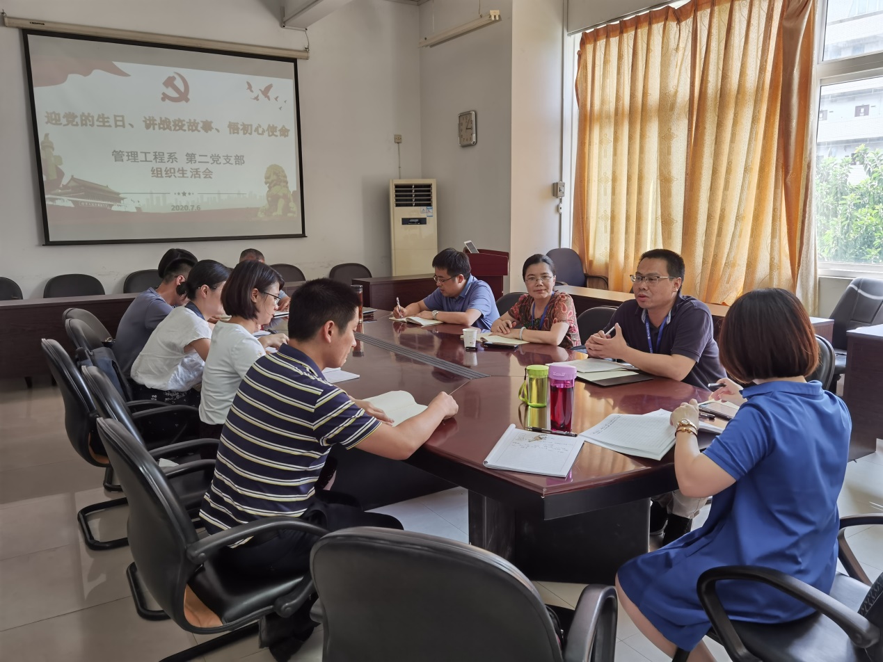為了嚴(yán)格落實(shí)三會(huì)一課,以及每半年一次組織生活會(huì)的制度,管理工程系二支部于2020年7月6日,以慶祝建黨99周年為契機(jī),以“迎黨的生日、講戰(zhàn)疫故事、悟初心使命”為主題,開(kāi)展黨員組織生活會(huì)。