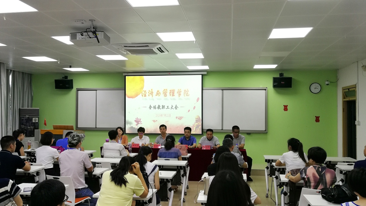 7月22日下午,新成立的經(jīng)濟(jì)與管理學(xué)院第一次全體教師大會(huì)在31#407舉行。經(jīng)濟(jì)與管理學(xué)院俞素平書記、房曰榮院長(zhǎng)、林麗萍副書記、吳吉明副院長(zhǎng)、林穎副院長(zhǎng)、副處級(jí)組織員黃瑞秋及全體教職員工參加了會(huì)議。會(huì)議由經(jīng)濟(jì)與管理學(xué)院黨總支副書記林麗萍主持。