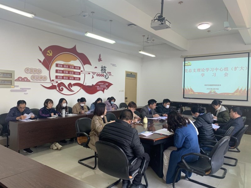2021年1月20日下午,經(jīng)管學(xué)院召開黨總支理論學(xué)習(xí)中心組(擴大)會議,學(xué)院理論中心組成員、各黨支部書記、各教研室主任參加了學(xué)習(xí)。學(xué)院黨總支書記俞素平主持會議。