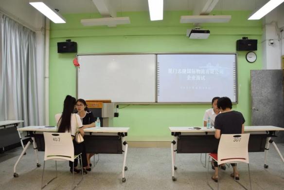 授牌儀式之后,廈門志捷在經(jīng)管樓舉辦校園宣講招聘會