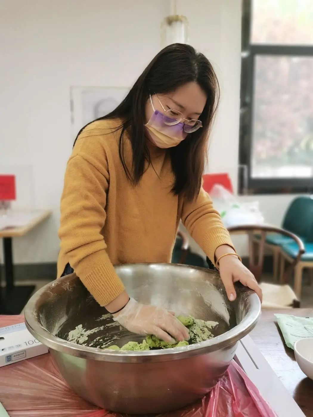 前幾天天下著雨,陰沉沉的,學(xué)生的思鄉(xiāng)情緒倍增?!袄蠋?,清明節(jié)可以請(qǐng)假回家嗎?”學(xué)生的話語(yǔ)牽動(dòng)著我的心,是啊,每逢佳節(jié)倍思親,因?yàn)橐咔樵?,學(xué)生暫時(shí)沒(méi)能夠回家。為了緩解同學(xué)們?cè)谛5乃监l(xiāng)之情,我們能為學(xué)生做些什么。回想起同學(xué)說(shuō)過(guò),清明節(jié)的時(shí)候回家總可以吃到青團(tuán),今年回不了家就吃不到了。“對(duì)呀,我們可以給學(xué)生做青團(tuán),也可以讓學(xué)生參與進(jìn)來(lái)一起做!”找材料,找位置,買(mǎi)材料,最后敲定在食堂一樓做青團(tuán)。我們做青團(tuán)的活動(dòng)就這么展開(kāi)了,買(mǎi)材料,找材料,開(kāi)始和青團(tuán)的面團(tuán),和好的面團(tuán)后,一步一步教學(xué)生包青團(tuán),做完青團(tuán)大家都非常期待等待著自己特色的青團(tuán)出爐,吃到自己親手做的青團(tuán),還帶回去給同學(xué)吃??粗瑢W(xué)們吃得津津有味,臉上又露出了開(kāi)心的笑臉,看著他們這么開(kāi)心,我的心情也跟著開(kāi)心起來(lái)了。