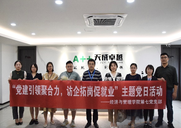 為深入貫徹黨中央、國務(wù)院“六穩(wěn)”“六?!睕Q策部署,積極響應(yīng)和推進(jìn)教育部“高校書記校長訪企拓崗業(yè)專項(xiàng)行動(dòng)”,深入推進(jìn)學(xué)院訪企拓崗促就業(yè)專項(xiàng)行動(dòng),不斷深化教學(xué)改革,拓寬畢業(yè)生就業(yè)渠道和資源,切實(shí)為畢業(yè)生做好事、辦實(shí)事、解難事。6月13日下午,院長房曰榮教授,副院長、第七黨支部書記林穎等一行5人赴福建天成卓越網(wǎng)絡(luò)科技有限公司、麥田房產(chǎn)兩家公司,開展“黨建引領(lǐng)聚合力 訪企拓崗促就業(yè)”主題黨日活動(dòng),切實(shí)落實(shí)畢業(yè)就業(yè)工作。