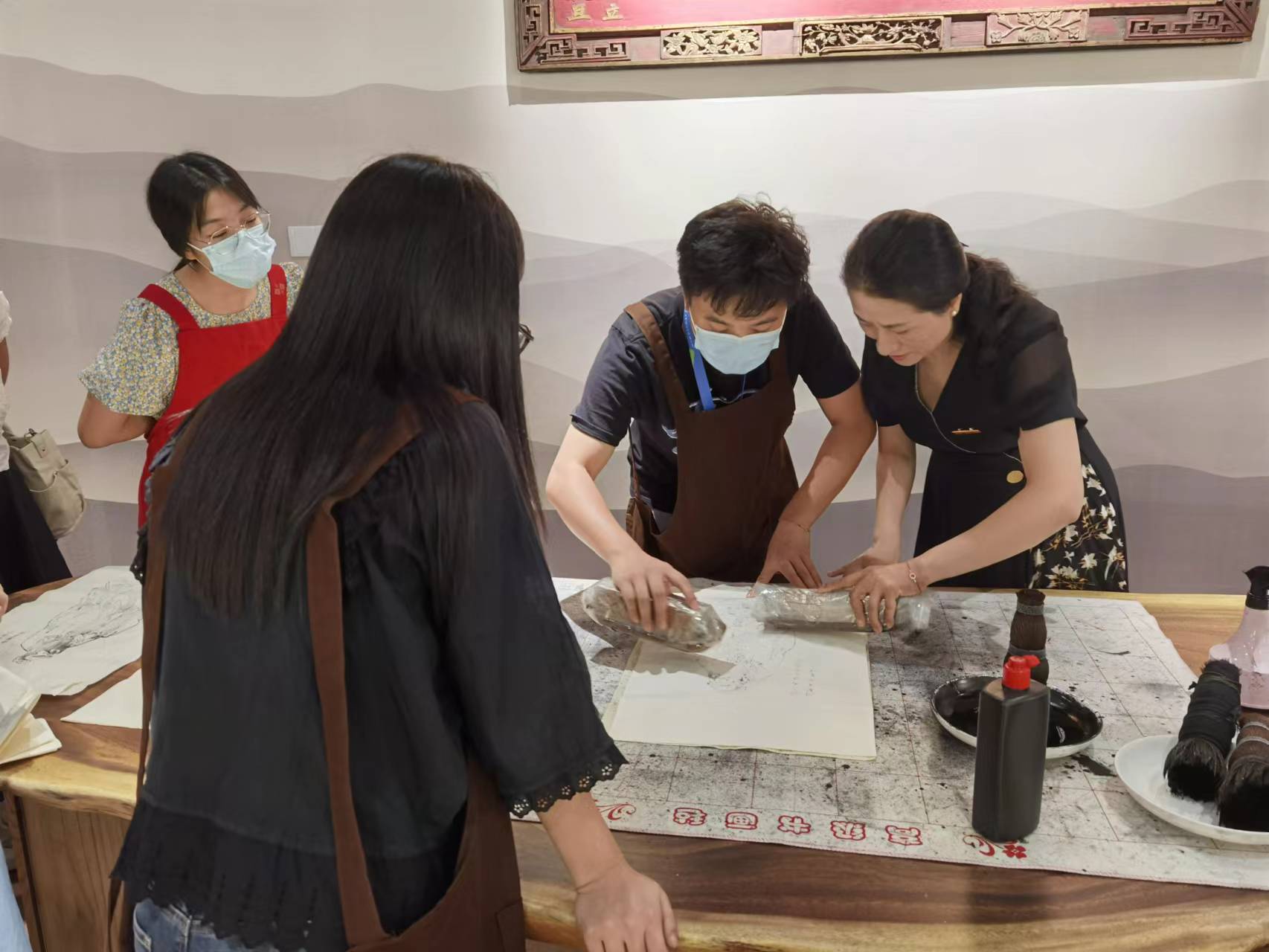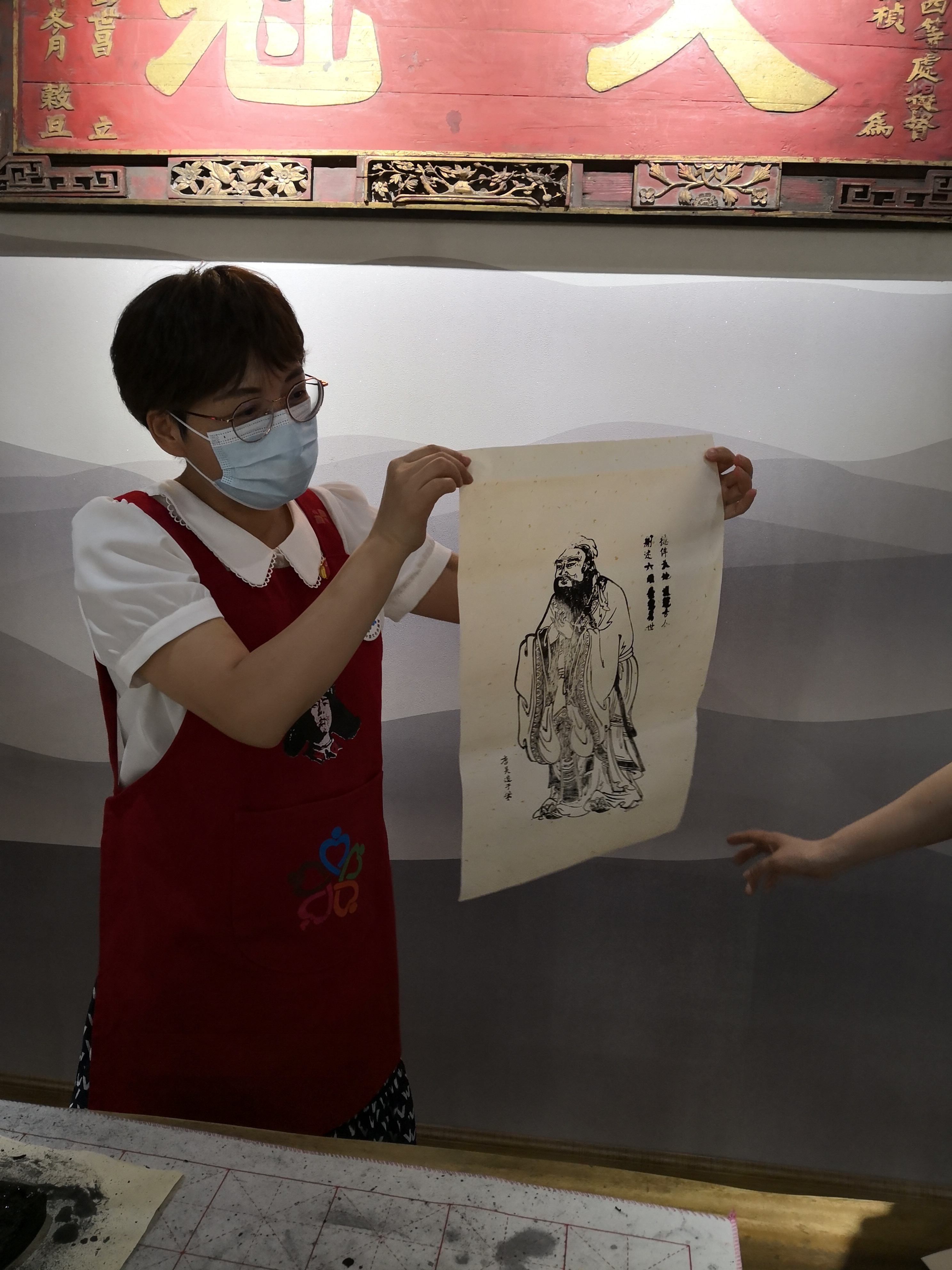 最后,大家移步體驗館,動手體驗了木版雕刻畫傳統(tǒng)工藝,親手摹刻孔夫子等古代圣賢畫像及精神,進(jìn)一步于墨香之間暈染素紙,體悟古之圣賢師德芬芳。