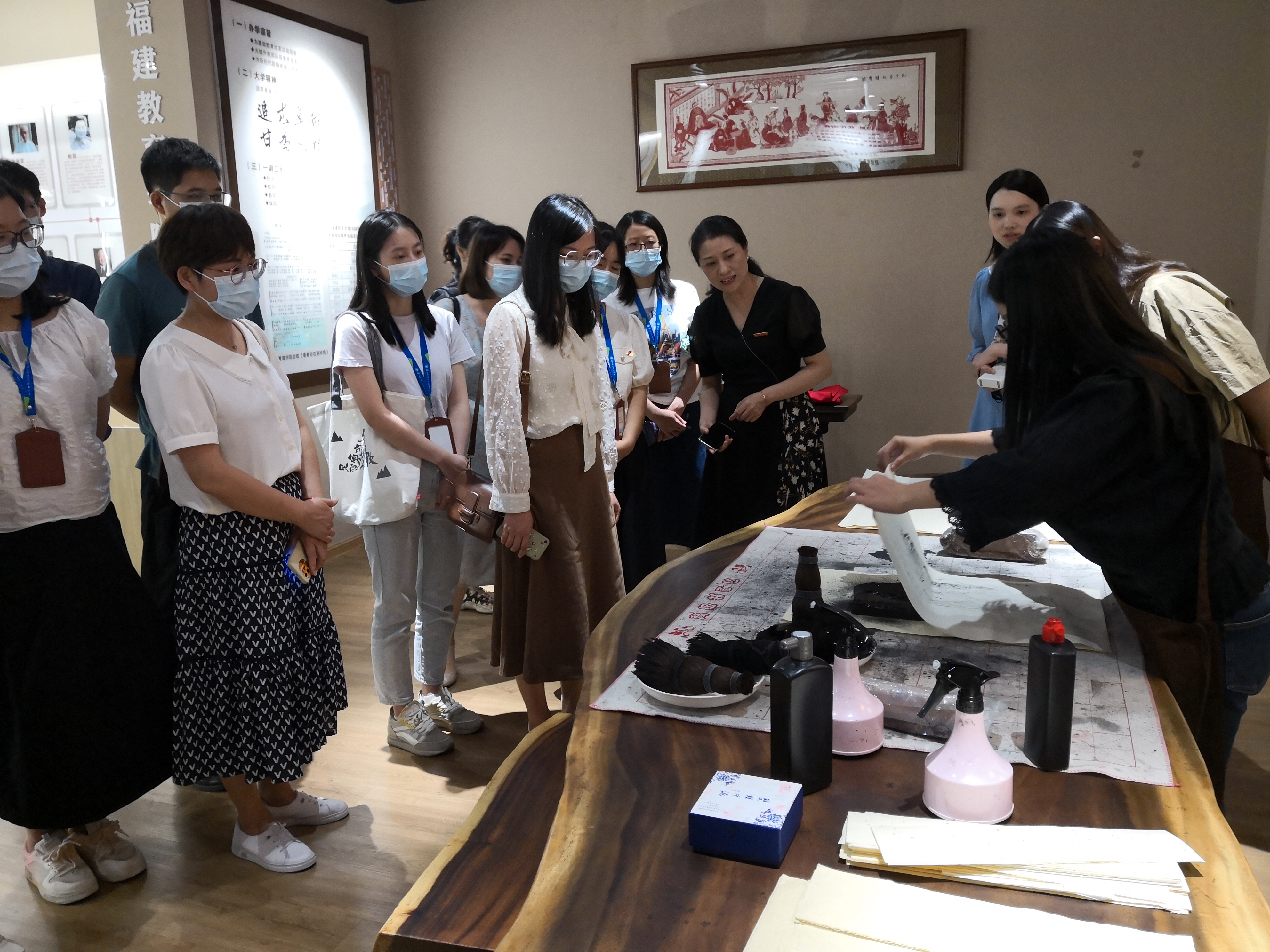 福建教育學(xué)院師德博物館是我國首座以“師德”為主題的博物館,分為“師德緣起”“師德蘊涵”“師德承載”“師德典范”“福建教育學(xué)院師德建設(shè)”五個基本陳列和十八個專題陳列。老師們跟隨講解員步入展館,聆聽師德的起源和發(fā)展,并現(xiàn)場觀看館藏珍貴的富有年代感的教具和具有史料價值的教材,切實感受到器道相融的育人精神。