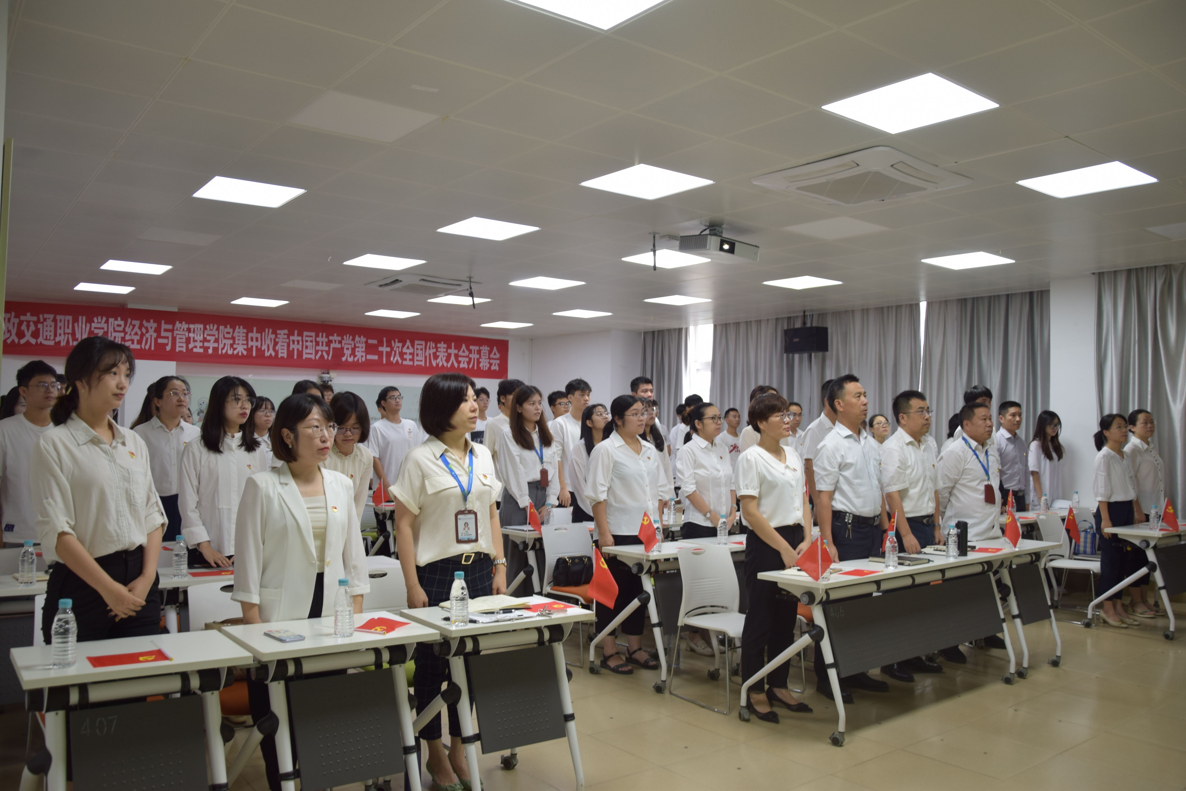 收看過程中,師生們邊看邊聽,邊學邊記。大家一致表示要把學習好、領(lǐng)會好、宣傳好、貫徹好黨的二十大精神作為當前和今后一個時期的重大政治任務(wù),會后迅速抓實學習領(lǐng)會、興起學習熱潮,結(jié)合實際抓好貫徹落實,推動工作發(fā)展,奮力開創(chuàng)推動學院高質(zhì)量發(fā)展的新局面。