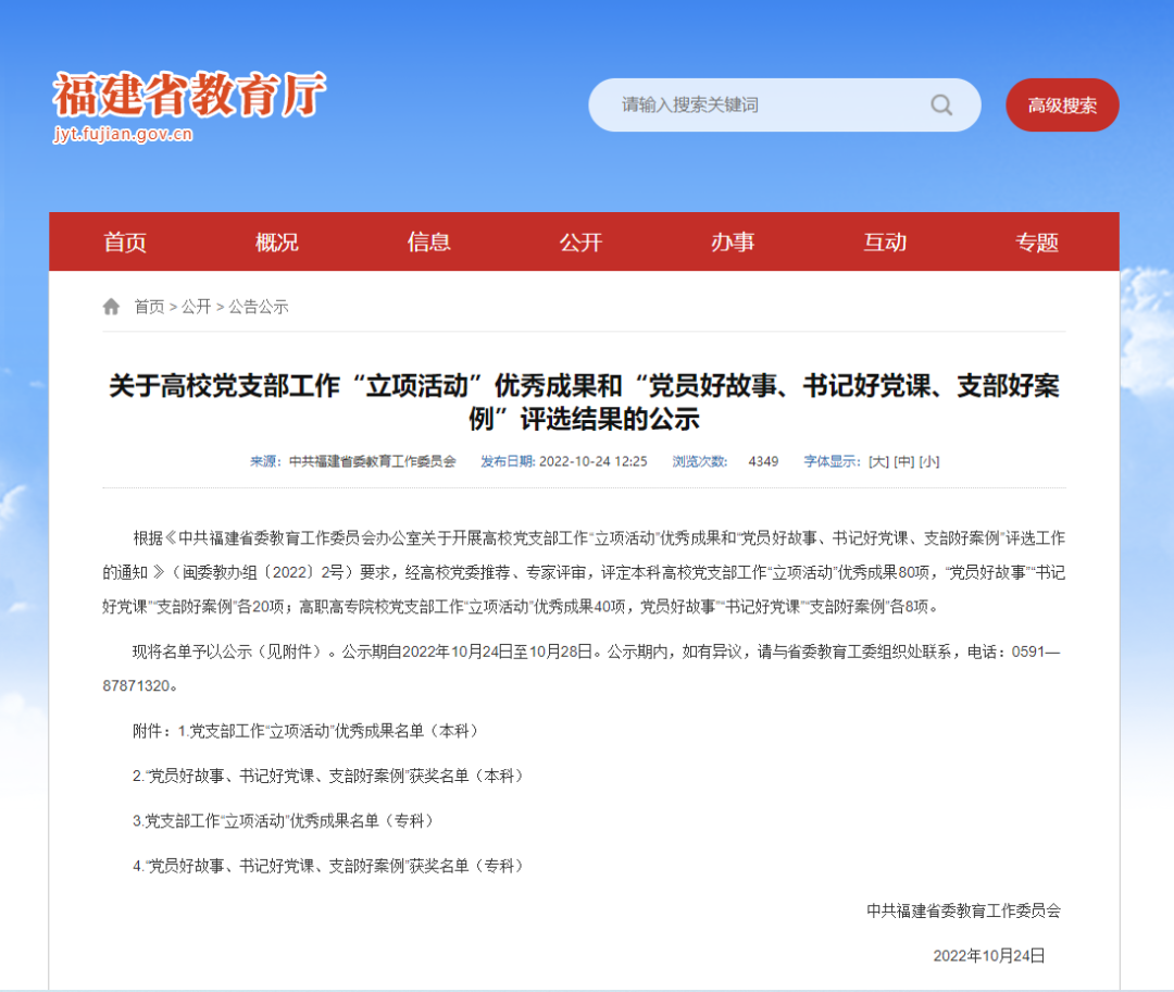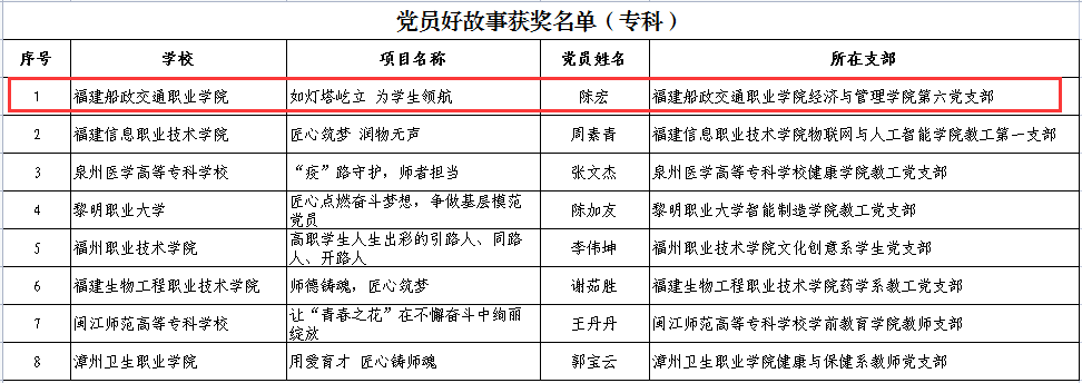 近日,省委教育工委公布了高校黨支部工作“立項(xiàng)活動(dòng)”優(yōu)秀成果和“黨員好故事、書記好黨課、支部好案例”評選結(jié)果。經(jīng)高校黨委推薦、專家評審,我院第六黨支部陳宏教授《如燈塔屹立 為學(xué)生領(lǐng)航》獲評“黨員好故事”。