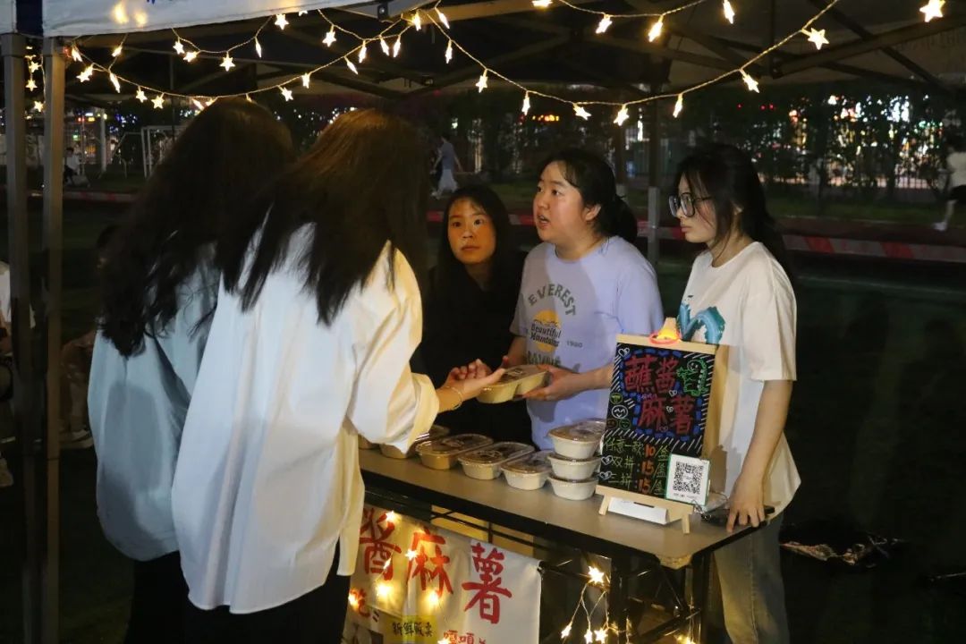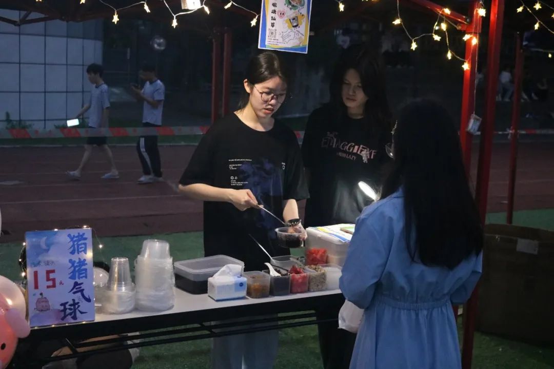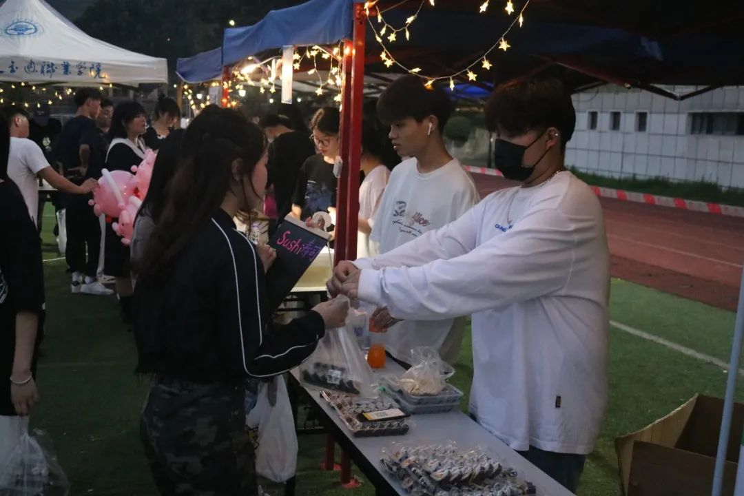 星光點點,晚風(fēng)徐來,此時就是最美好的歡樂場,各位攤主們用心賣出自己的每一份商品,帶給同學(xué)們,獨一無二的快樂體驗。