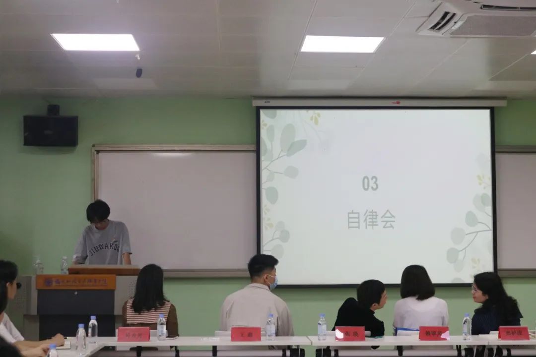 我院團(tuán)委兼職副書記(學(xué)生)邱航首先詳細(xì)介紹了我院學(xué)生會(huì)“四梁八柱”的工作體系、“五好”的學(xué)生干部選拔標(biāo)準(zhǔn)與“全心全意為同學(xué)服務(wù)”的宗旨。他表示,學(xué)生會(huì)要把服務(wù)同學(xué)成長、學(xué)校工作高質(zhì)量發(fā)展統(tǒng)一起來,不斷提升組織效率,協(xié)助學(xué)校解決同學(xué)在學(xué)習(xí)、生活中遇到的實(shí)際問題。積極配合黨組織開展活動(dòng),帶動(dòng)學(xué)生在實(shí)踐中提高政治素養(yǎng)。