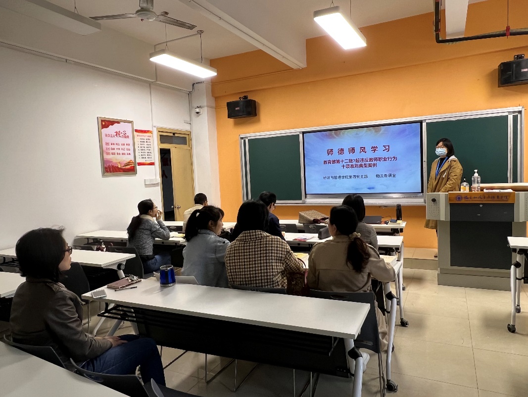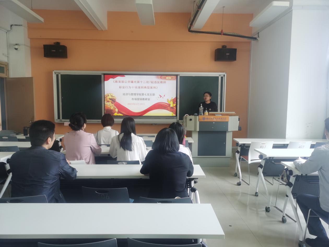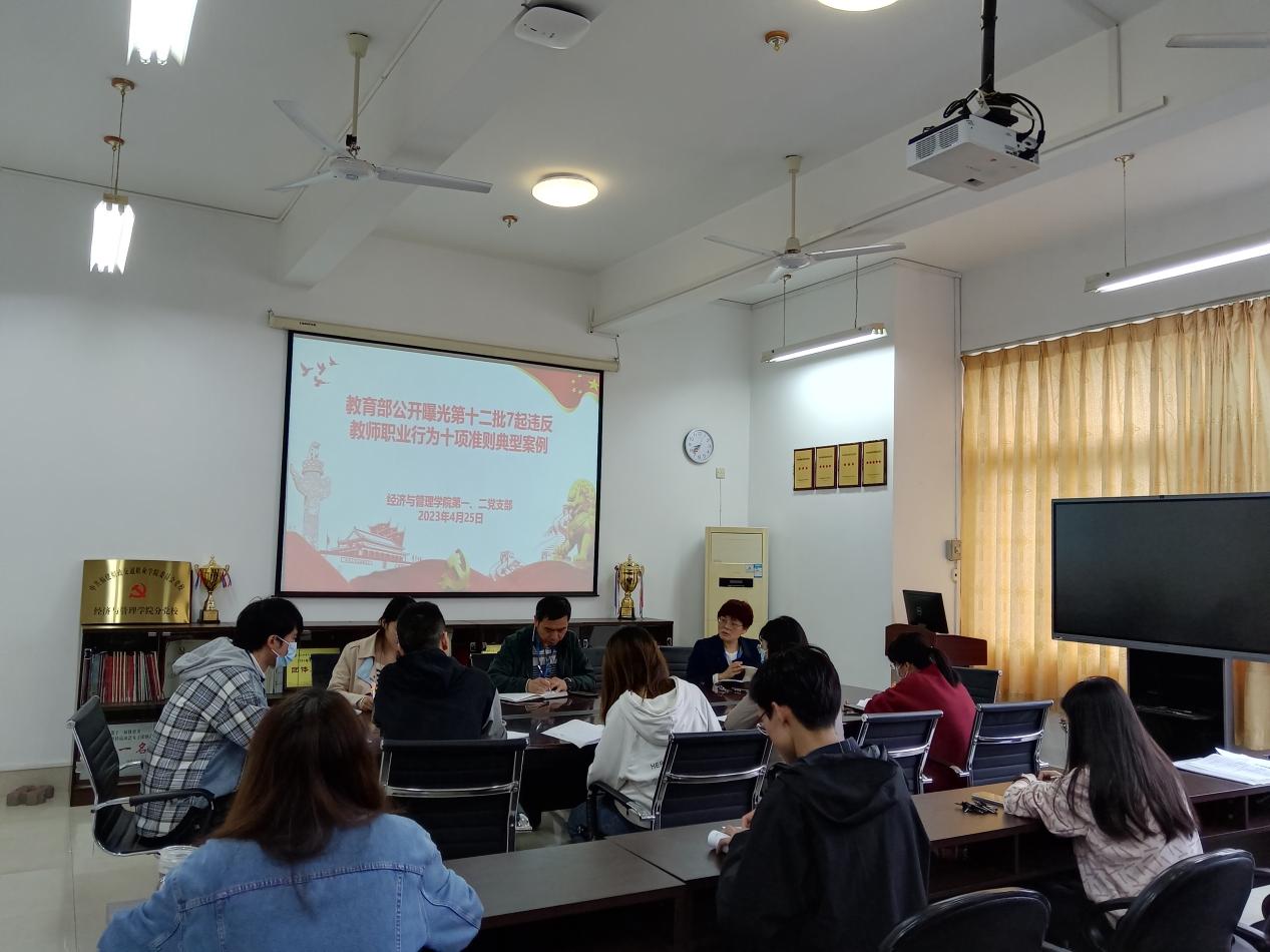 學(xué)高為師,身正為范。為進(jìn)一步增強(qiáng)我院廣大教職工的紅線意識與底線思維,近期,經(jīng)濟(jì)與管理學(xué)院以支部(教研室)為單位,結(jié)合每周一次的師德師風(fēng)學(xué)習(xí),統(tǒng)一安排部署開展了以“教育部公開曝光第十二批7起違反教師職業(yè)行為十項(xiàng)準(zhǔn)則典型案例”為主題的師德學(xué)習(xí)活動,通過集中與個人自學(xué)相結(jié)合的學(xué)習(xí)方式,要求全體教師嚴(yán)把師德師風(fēng)第一標(biāo)準(zhǔn),嚴(yán)守師德師風(fēng)規(guī)范,嚴(yán)格要求自己,加強(qiáng)自身思想政治和師德師風(fēng)建設(shè),將師德師風(fēng)作為評價(jià)教師隊(duì)伍素質(zhì)的第一標(biāo)準(zhǔn),對師德違規(guī)問題進(jìn)行“零容忍”處理。
