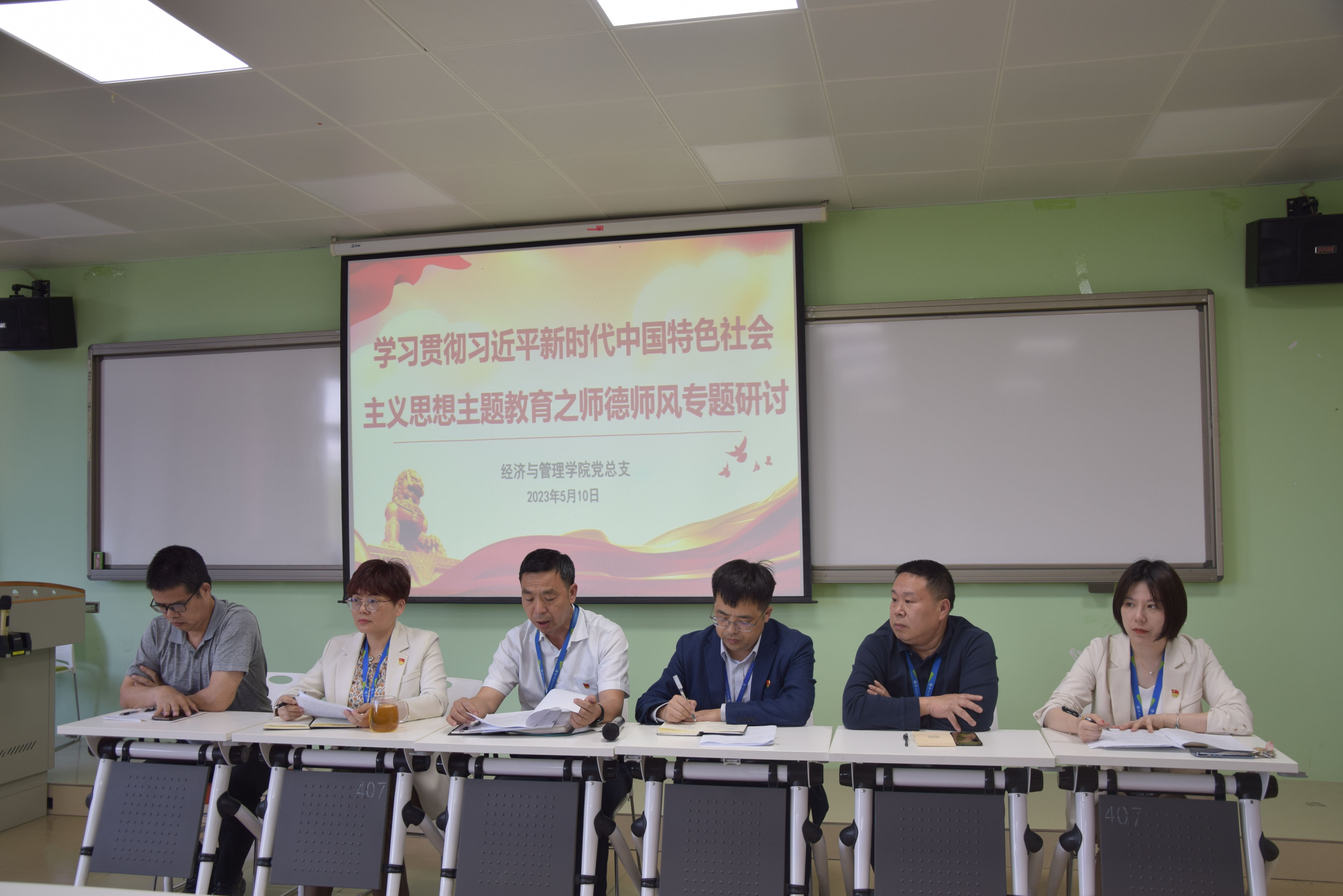 為深入貫徹落實黨的二十大精神,推進學(xué)習(xí)貫徹習(xí)近平新時代中國特色社會主義思想主題教育走深走實,進一步加強教師師德師風(fēng)建設(shè),不斷提升教師思想政治素質(zhì)和職業(yè)道德水平,牢牢把握師德師風(fēng)作為評價教師隊伍素質(zhì)的第一標(biāo)準(zhǔn),積極弘揚高尚師德,5月10日,經(jīng)濟與管理學(xué)院召開學(xué)習(xí)貫徹習(xí)近平新時代中國特色社會主義思想主題教育之師德師風(fēng)專題研討會師德師風(fēng)專題學(xué)習(xí)研討會。會議由院長房曰榮主持,學(xué)院全體教職工參加了此次活動。