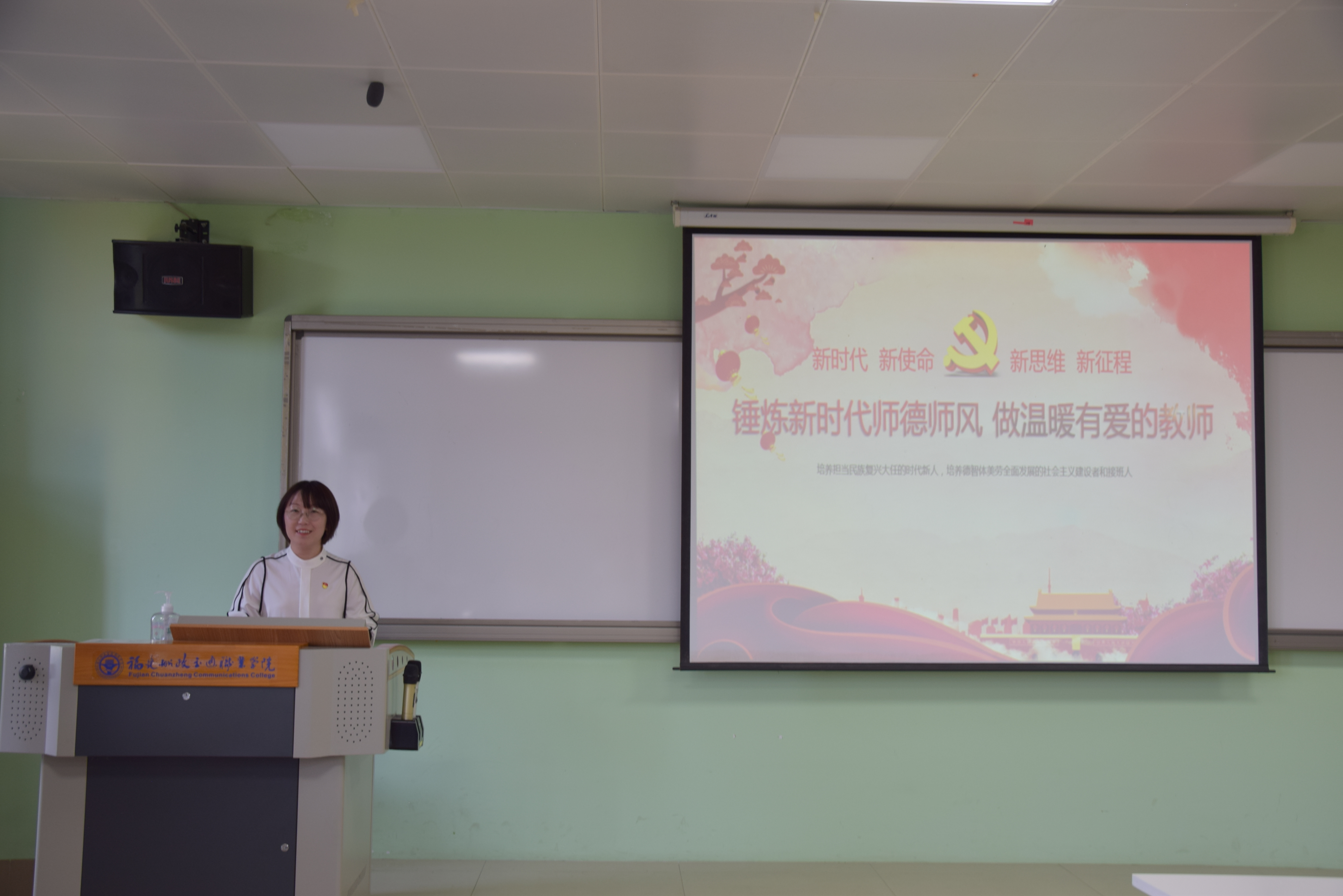 專題學(xué)習(xí)后,輔導(dǎo)員代表林媛、專任教師代表謝霓結(jié)合自身工作經(jīng)歷,分別以《深耕細(xì)作,立德樹人》《錘煉新時代師德師風(fēng),做溫暖有愛的老師》為題,以生動詳實的案例、通俗易懂的語言,分享了從教以來自己對師德的感悟,讓全體教職工體會到了師德并不是簡單地說教,而是一種精神的體現(xiàn),師德師風(fēng)也不是枯躁的理念和高舉的旗幟,它就體現(xiàn)在我們身邊,在我們的隊伍里。新時代教師應(yīng)該在三尺講臺上默默耕耘,嚴(yán)愛相濟、潤己澤人,以人格魅力呵護學(xué)生心靈,以學(xué)術(shù)造詣開啟學(xué)生智慧,讓每一個學(xué)生都健康成長。