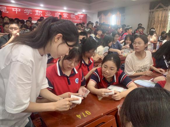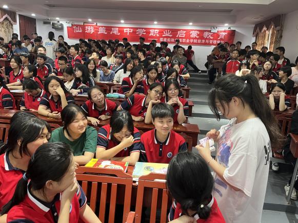 為深入學(xué)習(xí)貫徹黨的二十大精神和習(xí)近平總書記關(guān)于職業(yè)教育的重要指示批示精神,貫徹落實《國家職業(yè)教育改革實施方案》《中華人民共和國職業(yè)教育法》,培養(yǎng)中學(xué)生職業(yè)認(rèn)知和職業(yè)生涯規(guī)劃意識,拓展中學(xué)生職業(yè)技能體驗的途徑,提高職業(yè)教育的社會認(rèn)可度,樹立職業(yè)教育“有學(xué)頭、有盼頭、有奔頭”新形象。近日,我校經(jīng)濟(jì)與管理學(xué)院赴仙游縣蓋尾中學(xué),為高一年級學(xué)生帶來職業(yè)啟蒙教育課程。