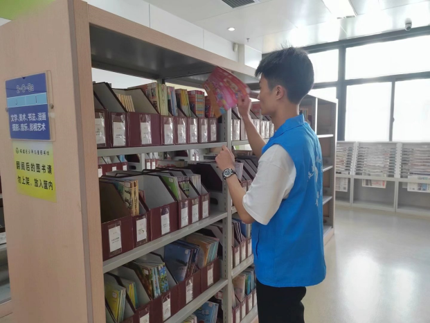 活動(dòng)二:前往福建省少年兒童圖書館進(jìn)行圖書整理等志愿服務(wù),根據(jù)資料室的圖書清單依次清查確認(rèn)圖書的保存情況并做好記錄、維護(hù)閱讀秩序、推廣閱讀活動(dòng)等。在本次志愿活動(dòng)中,同志們鍛煉了圖書分類和理架順架的能力,培養(yǎng)了吃苦耐勞的精神,在勞動(dòng)中提升和實(shí)現(xiàn)了自我。