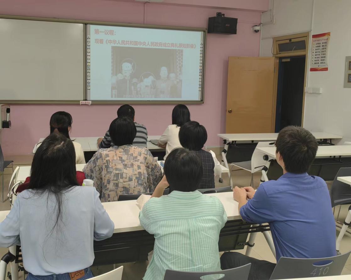 活動開始,全體黨員觀看了《中華人民共和國中央人民政府成立典禮原始影像》這一珍貴的影視資料,重溫了開國大典的偉大時刻。毛澤東主席在典禮中莊嚴宣告了中華人民共和國成立,中國人民從此站起來了。大家在觀看完中華人民共和國中央人民政府成立典禮的原始影像后深有感觸,表示觀看后心情久久不能平靜,深深的感受到我們今天的幸福生活來之不易。