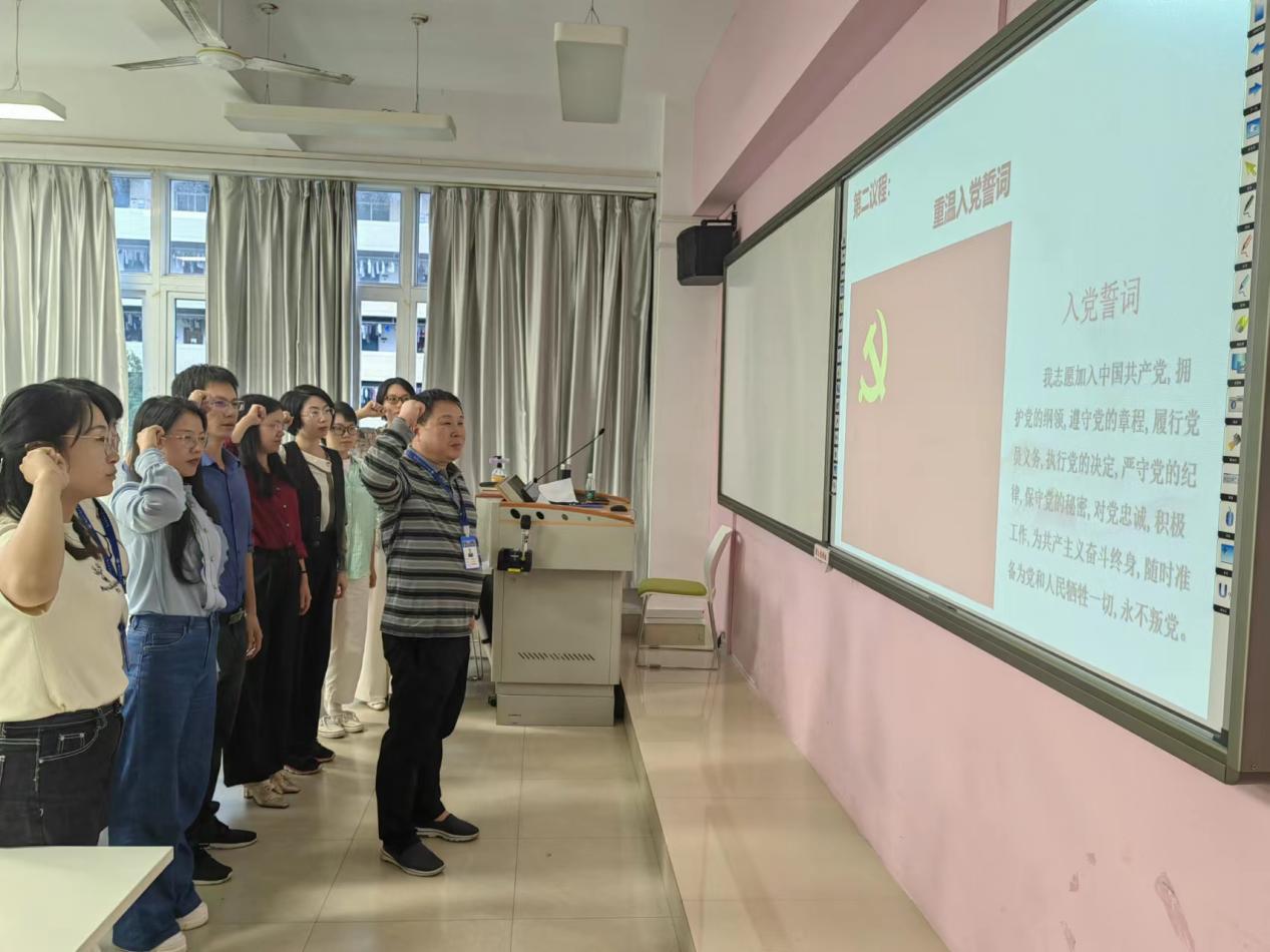 接著,全體黨員在支部書記的帶領下,整齊列隊,肅穆而立,面對黨旗,高舉右手,齊聲莊嚴宣誓:“我志愿加入中國共產黨,擁護黨的綱領,遵守黨的章程,履行黨員義務……”鏗鏘有力的聲音傳達出了身為共產黨員的自豪感和使命感。黨員們紛紛表示,將始終牢記共產黨員的第一身份,為黨工作的第一職責和為共產主義事業(yè)奮斗終身的第一誓言,時刻發(fā)揮黨員的先鋒模范作用,將愛黨愛國情懷融入日常工作中,以更加昂揚的斗志、飽滿的熱情、奮進的姿態(tài)投身學院高質量發(fā)展新征程。