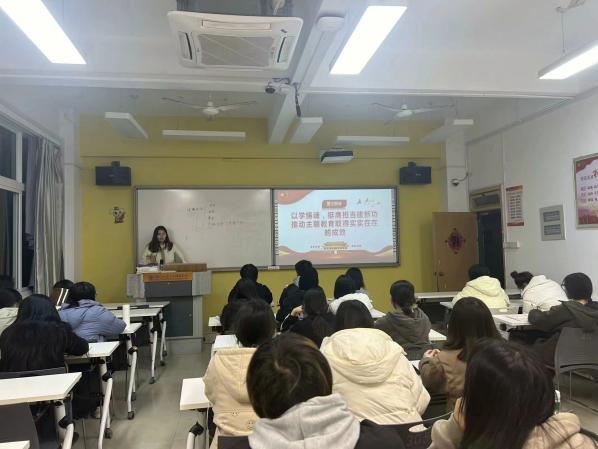 我院團(tuán)委副書記吳霜婷引用習(xí)近平總書記在主題教育工作會(huì)議上的講話要點(diǎn),點(diǎn)明思想教育的重要性,闡述思想與行動(dòng)的關(guān)系。提醒廣大青年要牢記“學(xué)思想,強(qiáng)黨性,重實(shí)踐,建新功”的總要求,始終堅(jiān)持以學(xué)鑄魂,以學(xué)增智,以學(xué)正風(fēng),以學(xué)促干,不斷提高自身思想水平、政治覺悟、道德品質(zhì)、文化素養(yǎng),做有所擔(dān)當(dāng),有所作為的新時(shí)代中國(guó)青年,積極展示當(dāng)代中國(guó)青年奮發(fā)圖強(qiáng),勇于斗爭(zhēng),拼搏向上的精神面貌。