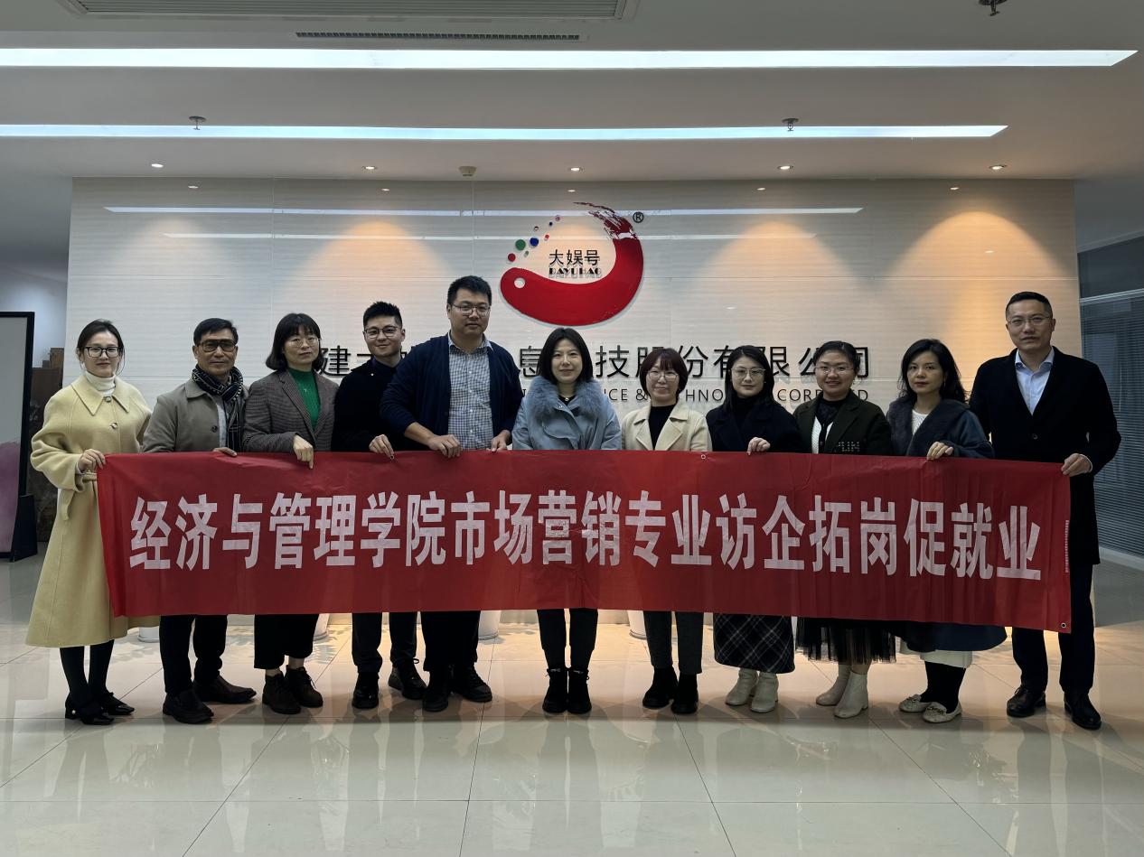 為深入貫徹落實(shí)黨中央、國(guó)務(wù)院關(guān)于高校畢業(yè)生就業(yè)工作的決策部署,切實(shí)做好2024屆畢業(yè)生就業(yè)工作。2024年1月11日上午,經(jīng)濟(jì)與管理學(xué)院副院長(zhǎng)林穎帶領(lǐng)市場(chǎng)營(yíng)銷(xiāo)教研室骨干老師一行6人前往福建大娛號(hào)信息科技股份有限公司開(kāi)展訪企拓崗工作。