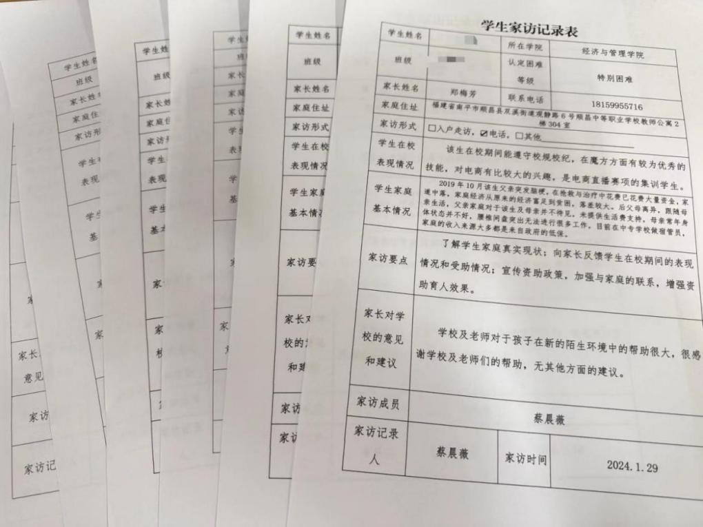 經(jīng)濟(jì)與管理學(xué)院全體輔導(dǎo)員通過電話訪談、視頻通話等線上形式,與困難生家庭進(jìn)行了聯(lián)系,確保家訪活動(dòng)的全面覆蓋。通過電話和視頻,輔導(dǎo)員與學(xué)生和家長進(jìn)行了深入的交流,了解了學(xué)生在家中的學(xué)習(xí)、生活情況以及家庭狀況,并就學(xué)生在校期間的表現(xiàn)和學(xué)習(xí)情況與家長進(jìn)行了反饋。同時(shí),輔導(dǎo)員還向家長宣傳了學(xué)校的教育理念、課程設(shè)置和教學(xué)特色,幫助家長更好地了解學(xué)校的教育教學(xué)工作,并收集了家長對(duì)于學(xué)校的意見和建議。家訪結(jié)束后,輔導(dǎo)員認(rèn)真做好記錄,我院共收集到上百份家訪記錄表。