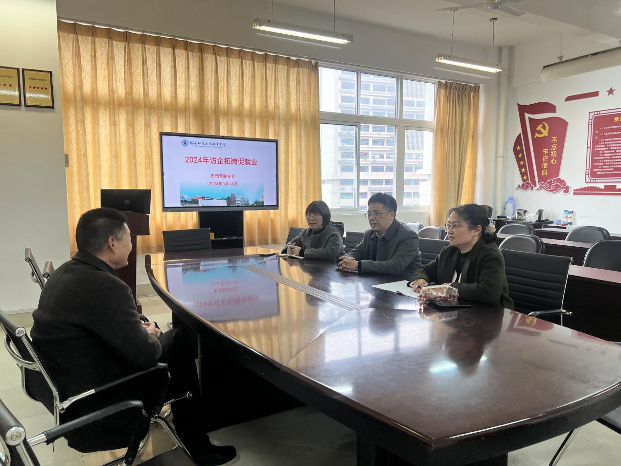 為深入貫徹教育部、省教育廳關(guān)于2024屆高校畢業(yè)生就業(yè)工作會(huì)議精神,深入推進(jìn)學(xué)院“訪企拓崗促就業(yè)”專項(xiàng)行動(dòng),加強(qiáng)與優(yōu)質(zhì)企業(yè)的聯(lián)系與合作,為畢業(yè)生開拓更廣闊的就業(yè)崗位與市場(chǎng)資源,助力2024屆畢業(yè)生高質(zhì)量就業(yè),經(jīng)濟(jì)與管理學(xué)院于3月14日攜手福州空中郵車網(wǎng)絡(luò)科技有限公司,共同舉辦了一場(chǎng)訪企拓崗座談會(huì),學(xué)院院長(zhǎng)房曰榮與空中郵車總經(jīng)理劉軼華參與了此次活動(dòng)。