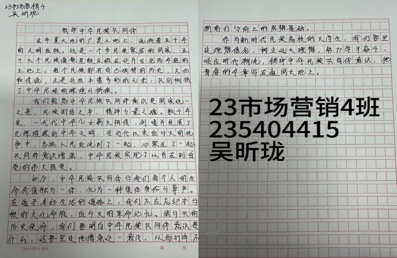 2月29日—3月3日,我院開展以“鑄牢共同體意識(shí),凝聚民族之魂魄”為主題的線上征文活動(dòng)。參與活動(dòng)的學(xué)生在提升文學(xué)知識(shí)儲(chǔ)備與寫作技巧的同時(shí),增加了對(duì)不同民俗文化的了解。活動(dòng)促進(jìn)了各民族同學(xué)之間的交流與融合,增強(qiáng)對(duì)中華民族共同體意識(shí)的認(rèn)同感,培養(yǎng)新時(shí)代民族團(tuán)結(jié)的“守護(hù)者”“傳承者”與“踐行者”。