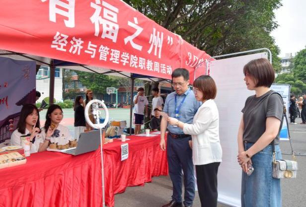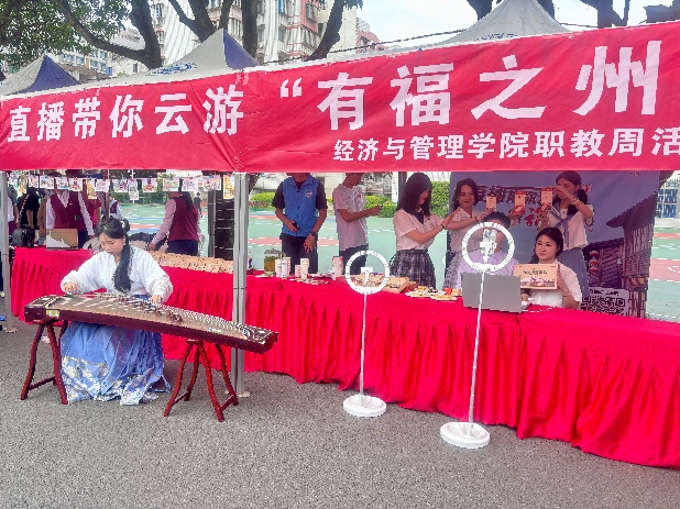 為貫徹落實習近平總書記關于職業(yè)教育的重要指示精神和黨的二十大精神,全面展示職業(yè)教育發(fā)展,深化職業(yè)教育改革成果,經濟與管理學院于5月12日在福道園文體中心前,開展直播帶你云游“有福之州”職教周活動。