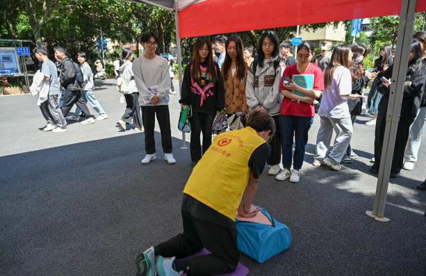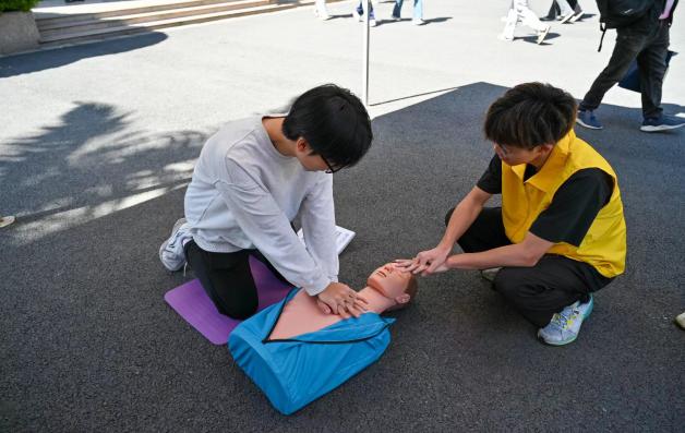 活動伊始,現(xiàn)場工作人員為同學(xué)們普及急救知識、急救包扎手法,講解了心肺復(fù)蘇的救護方法,并在現(xiàn)場利用模型進行實踐操作,工作人員手把手指導(dǎo)并耐心講解技術(shù)要點,對存在的問題給與耐心細致的糾正,在場學(xué)生熱情高漲,積極參與,現(xiàn)場氣氛融洽。同學(xué)們紛紛表示,通過參加這次活動,不僅豐富了應(yīng)急救護知識,還提高了日常生活中遇到各種突發(fā)事件的應(yīng)急救護能力。
