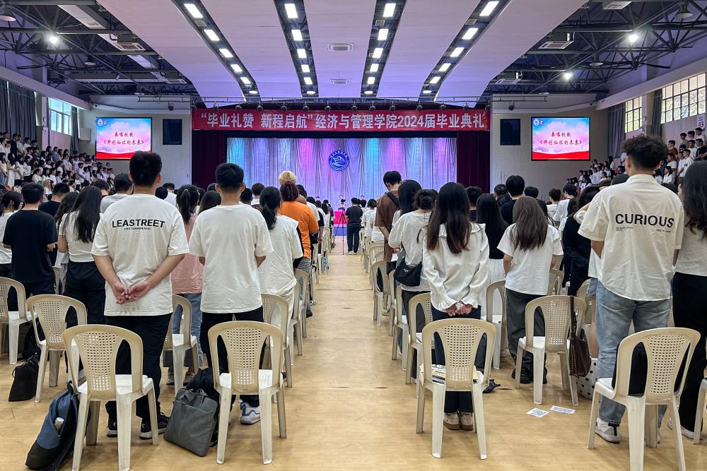 伴隨莊嚴的國歌聲,2024屆畢業(yè)典禮正式拉開帷幕。學院領(lǐng)導(dǎo)俞素平、房曰榮、林麗萍、吳吉明、林穎,各教研室主任、輔導(dǎo)員、班主任、校友代表以及2024屆全體畢業(yè)生參加儀式。典禮由副院長林穎主持。