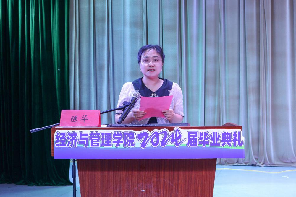 教師代表陳華老師上臺寄語。她代表全體教師向各位畢業(yè)生給予了最深的敬意和最真摯的祝福。她向同學們闡述了三點感悟:第一,要“鍛造匠心”,希望同學們今后無論身處何種崗位,都能以匠心獨具的態(tài)度追求卓越、不斷創(chuàng)新、鑄造輝煌;第二,要“堅守本心”,她希望同學們面對紛繁世界時,能不被外界的誘惑所動搖,始終保持一顆純凈的心,去追求自己的理想和信念;第三,要“不忘初心”,她希望同學們始終牢記自己的初心和使命,勇于面對困難和挑戰(zhàn),不斷學習新知識和新技能,成為對社會有貢獻的人。