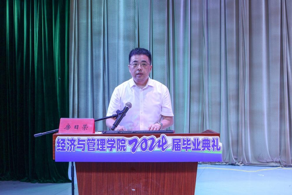 房曰榮院長在畢業(yè)典禮上滿腔熱忱地發(fā)表致辭。他向順利完成學業(yè)的2024屆畢業(yè)生表示熱烈的祝賀,向幫助同學們成長的老師們致以衷心的感謝和崇高的敬意。他回顧了這三年來同學們奮斗的足跡以及辛勤耕耘收獲的累累碩果,并向同學們提出了殷切希望:第一、守誠信,樹品格。希望同學們培養(yǎng)良好的品格和習慣,遵守社會公德和職業(yè)道德,不斷提升自己的品行修養(yǎng),為社會的發(fā)展貢獻力量;第二、追卓越,重實干。希望同學們賡續(xù)我校“精益求精,密益求密”校風,以“一鼓作氣”的干勁、“一馬當先”的拼勁、“一往無前”的闖勁,在新時代新征程上留下青春的足跡;第三、立大志,擔使命。希望同學們樹立遠大的理想和抱負,自覺將社會責任銘記于心、付諸行動,將個人夢想融入民族復(fù)興的偉大事業(yè),讓青春在時代浪潮中激蕩出澎湃的浪花。