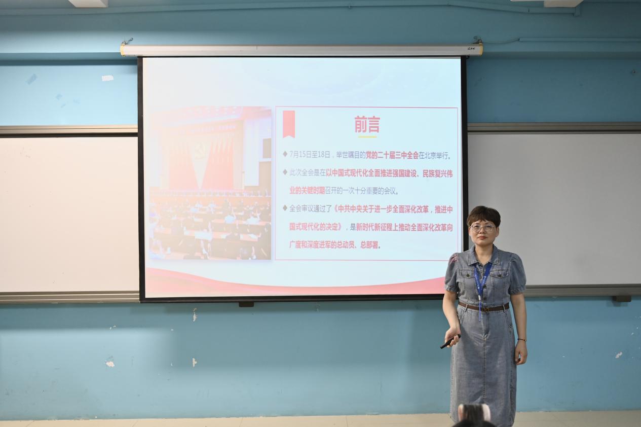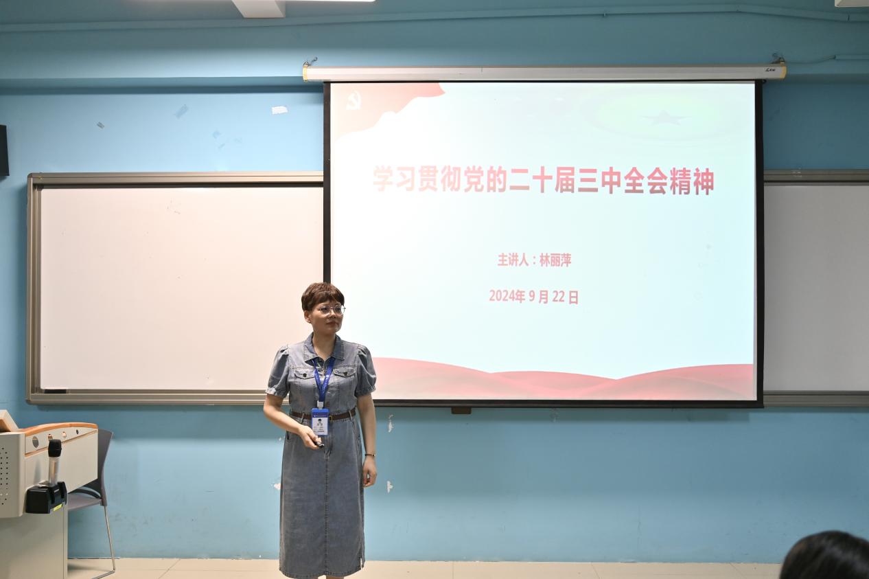 為引導(dǎo)青年學(xué)生深入理解黨的二十屆三中全會(huì)精神,將個(gè)人成長與國家發(fā)展緊密結(jié)合,用青春力量為時(shí)代添彩。9月22日,在慶祝中華人民共和國成立75周年之際,經(jīng)濟(jì)與管理學(xué)院黨總支副書記林麗萍向24電商(3+2)4班和24現(xiàn)代物流管理(3+2)2班學(xué)生宣講黨的二十屆三中全會(huì)精神。