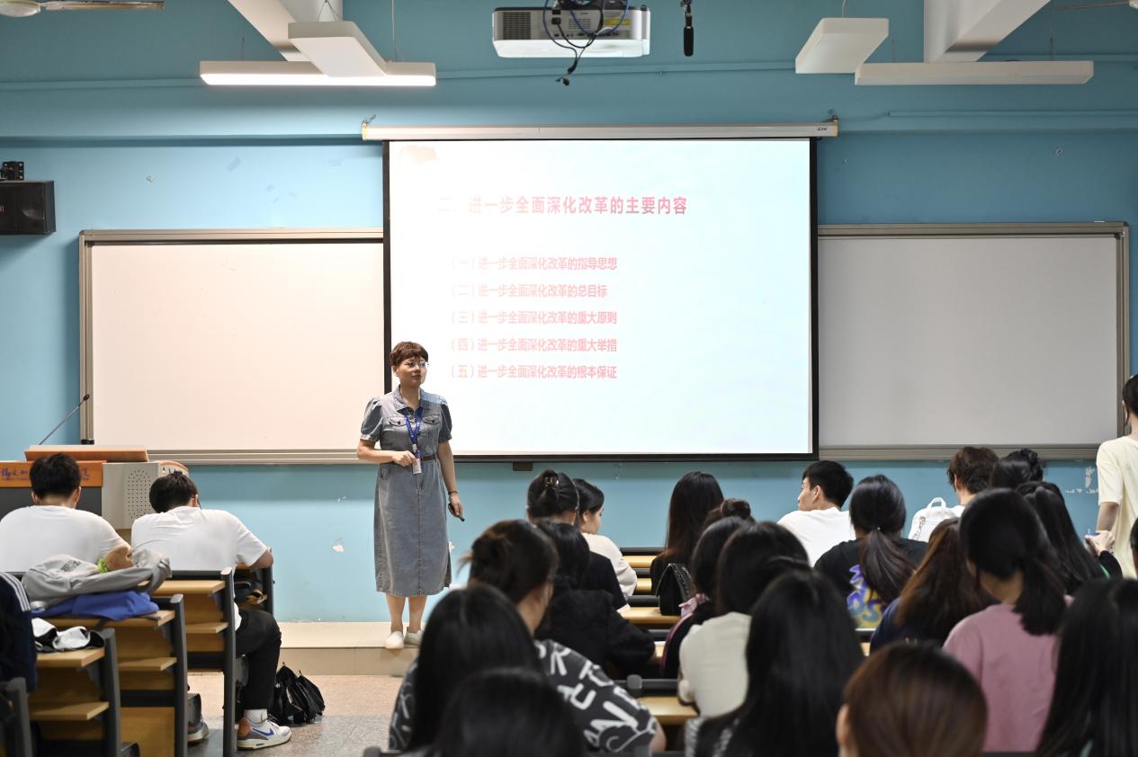 林麗萍書記從全面深化改革的原因、全面深化改革的目標(biāo)和重點(diǎn)、全面深化改革的總體思路、原則和舉措等方面深入解讀了全面深化改革的重要意義,系統(tǒng)闡釋了全面深化改革的重點(diǎn)內(nèi)容。她指出,當(dāng)前,我國正處于實(shí)現(xiàn)中華民族偉大復(fù)興的關(guān)鍵時(shí)期,經(jīng)濟(jì)社會(huì)發(fā)展面臨諸多挑戰(zhàn)和機(jī)遇。我們必須深刻認(rèn)識到,改革是決定當(dāng)代中國命運(yùn)的關(guān)鍵一招,也是實(shí)現(xiàn)中華民族偉大復(fù)興的必由之路。面對新挑戰(zhàn)、新機(jī)遇,林麗萍副書記提醒同學(xué)們要保持清醒頭腦和堅(jiān)定信心。深刻認(rèn)識到當(dāng)前國內(nèi)外形勢的復(fù)雜性和嚴(yán)峻性,做好應(yīng)對各種風(fēng)險(xiǎn)和挑戰(zhàn)的準(zhǔn)備;要看到新時(shí)代賦予新時(shí)代青年的新機(jī)遇和新使命,把握發(fā)展機(jī)遇,推動(dòng)經(jīng)濟(jì)社會(huì)持續(xù)健康發(fā)展。