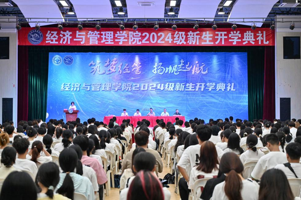 年華正茂啟新篇,矢志前行筑夢圓。2024年9月25日,經(jīng)濟與管理學(xué)院2024級新生開學(xué)典禮在文體中心隆重舉行。經(jīng)濟與管理學(xué)院黨總支書記俞素平,院長房曰榮,廈門市海滄區(qū)職業(yè)中專學(xué)校副校長謝文輝,經(jīng)濟與管理學(xué)院黨總支副書記林麗萍,副院長吳吉明、林穎,團委書記傅一丹等領(lǐng)導(dǎo)出席典禮,經(jīng)濟與管理學(xué)院各教研室主任,廈門市海滄區(qū)職業(yè)中專學(xué)校教師,2024級新生輔導(dǎo)員、班主任及全體新生、助導(dǎo)到場參加。典禮由副院長林穎主持。