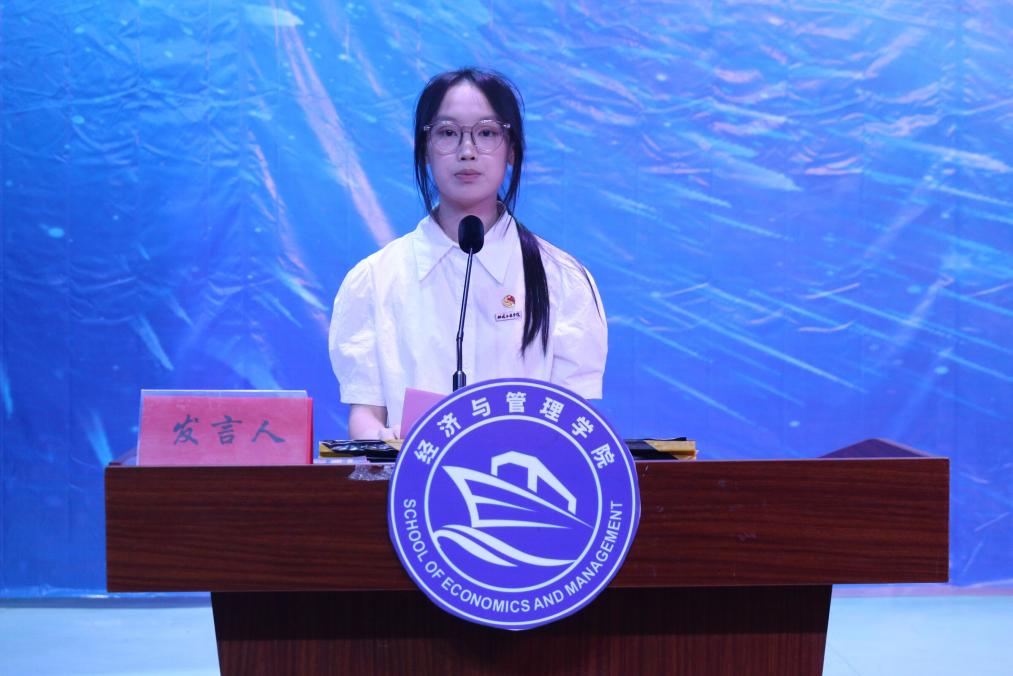 2024級市場營銷4班的林舒怡作為新生代表上臺發(fā)言?!扒啻喝绯醮?,如朝日,如百卉之萌動,如利刃之新發(fā)于硎。”她以梁啟超先生的青春名言為引,激勵新生們以青春的熱情和朝氣,勇敢地面對大學(xué)的新挑戰(zhàn)。同時,她還呼吁同學(xué)們要珍惜學(xué)習(xí)時光,相信自己的能力和潛力,積極參與各項活動,樹立正確的人生觀和價值觀,不斷地追求進步和成長。