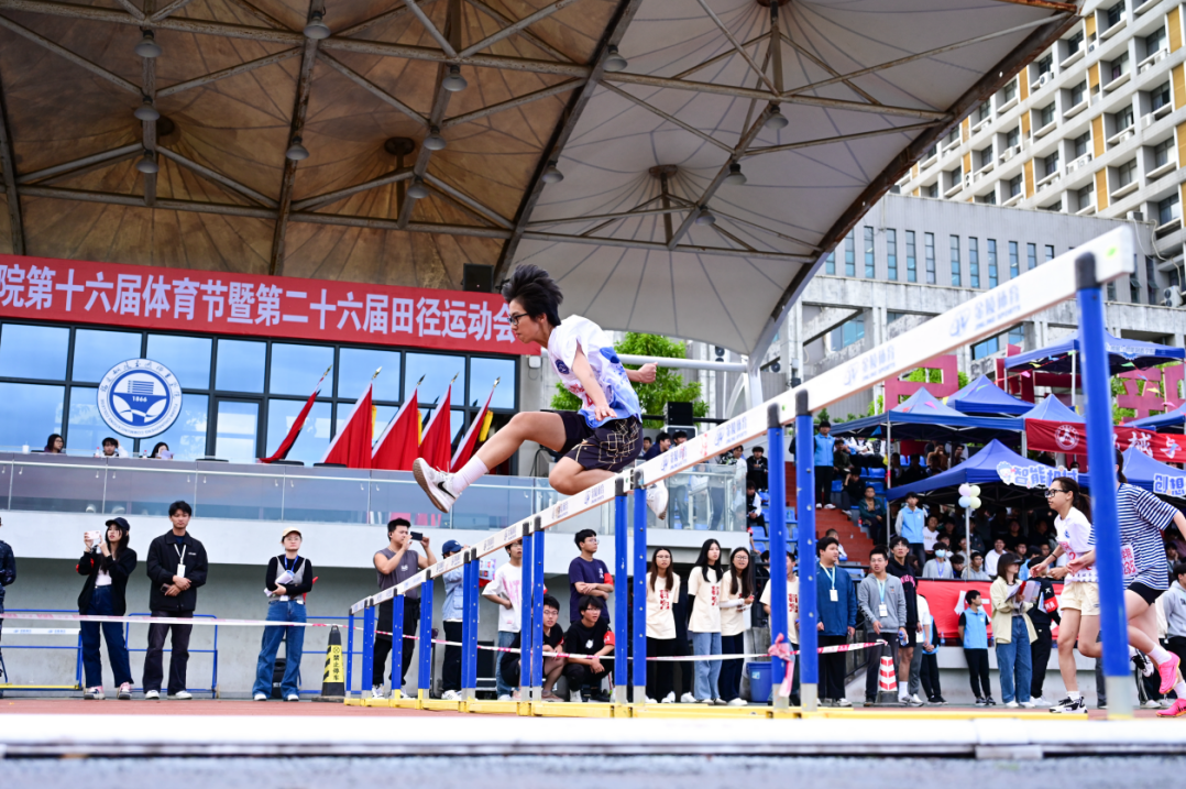 在田賽賽場(chǎng)上,我院運(yùn)動(dòng)員們以力量、技巧與飛躍詮釋著體育之美。他們或手持鉛球,凝聚全身之力投擲;或立于跳高桿前,輕盈起跳,身姿矯??;亦或在跳遠(yuǎn)沙坑前,助跑有力,騰空飛躍。