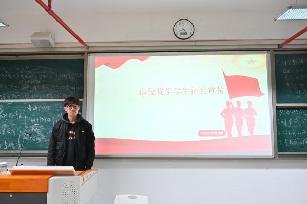 為激發(fā)大學(xué)生的愛國情懷,營造積極向上的校園氛圍,我院于12月19日開展“軍旅榮光,赤心永鑄”退役復(fù)學(xué)學(xué)生征兵宣傳活動(dòng)。