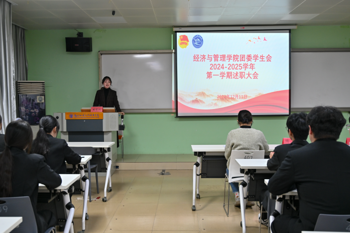 經(jīng)濟(jì)與管理學(xué)院團(tuán)委學(xué)生會(huì)2024年度述職大會(huì)于2024年12月11日晚在求實(shí)樓407教室順利召開(kāi),學(xué)院團(tuán)委書(shū)記傅一丹、團(tuán)委副書(shū)記吳霜婷、團(tuán)委組織委員陳艷蕓、團(tuán)委宣傳委員官源及全體部門(mén)負(fù)責(zé)人出席此次會(huì)議。本次大會(huì)旨在總結(jié)過(guò)去一年團(tuán)委學(xué)生會(huì)工作的成績(jī)與不足,分析問(wèn)題,明確未來(lái)工作的重點(diǎn)和發(fā)展方向。
