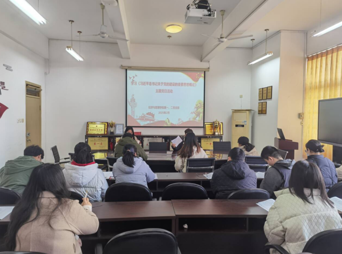 為深入理解和貫徹習(xí)近平總書記關(guān)于黨的建設(shè)的重要思想,提高黨員在黨建理論和實踐方面的能力,2025年2月24日,經(jīng)濟(jì)與管理學(xué)院第一、二黨支部在求實樓412聯(lián)合舉辦主題為《習(xí)近平總書記關(guān)于黨的建設(shè)的重要思想概論》學(xué)習(xí)研討會。