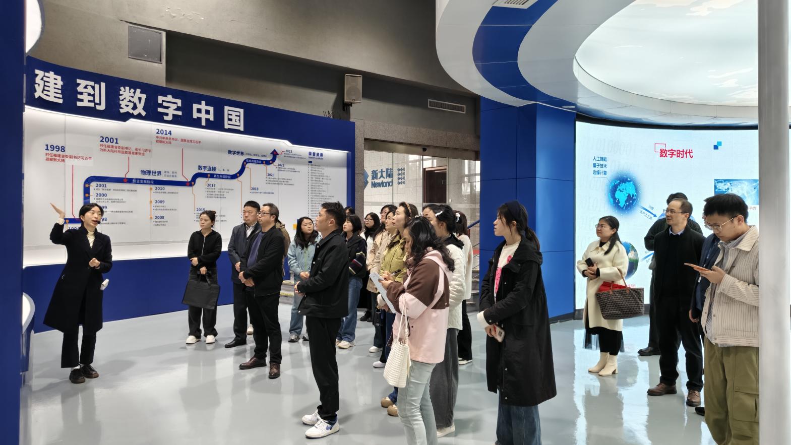 阮毅一行在新大陸產(chǎn)品經(jīng)理林志斌的陪同下首先來到了集團(tuán)展廳,公司負(fù)責(zé)人詳細(xì)介紹了新大陸教育的發(fā)展歷程、校企合作項(xiàng)目的開發(fā)以及公司未來發(fā)展的規(guī)劃。
