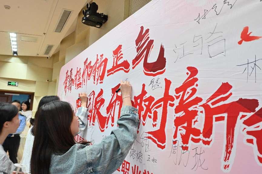 為深化新時代高校反邪教宣傳教育,提高青年學生識邪、防邪、拒邪的意識和能力,2025年4月13日,福建警察學院守望清風社團與福建船政交通職業(yè)學院經濟與管理學院聯(lián)合舉辦"青春拒邪揚正氣校園反邪樹新風"主題防邪教宣傳活動。福建警察學院守望清風社團師生、經濟與管理學院師生代表,共140余人參加。