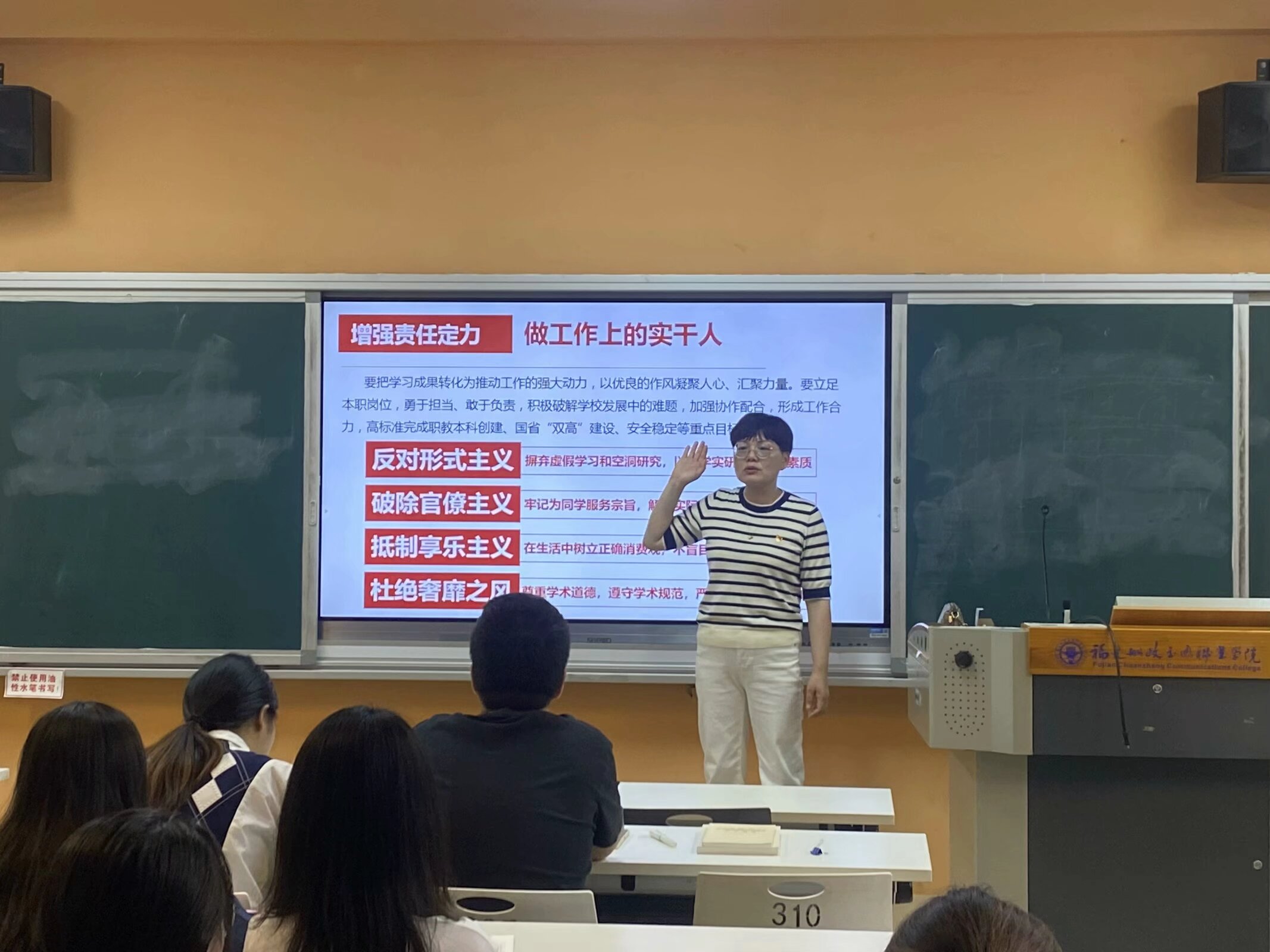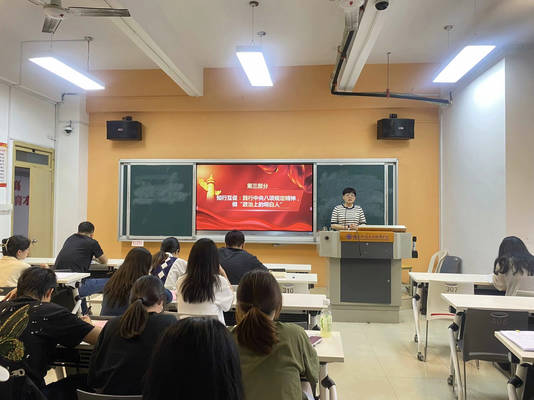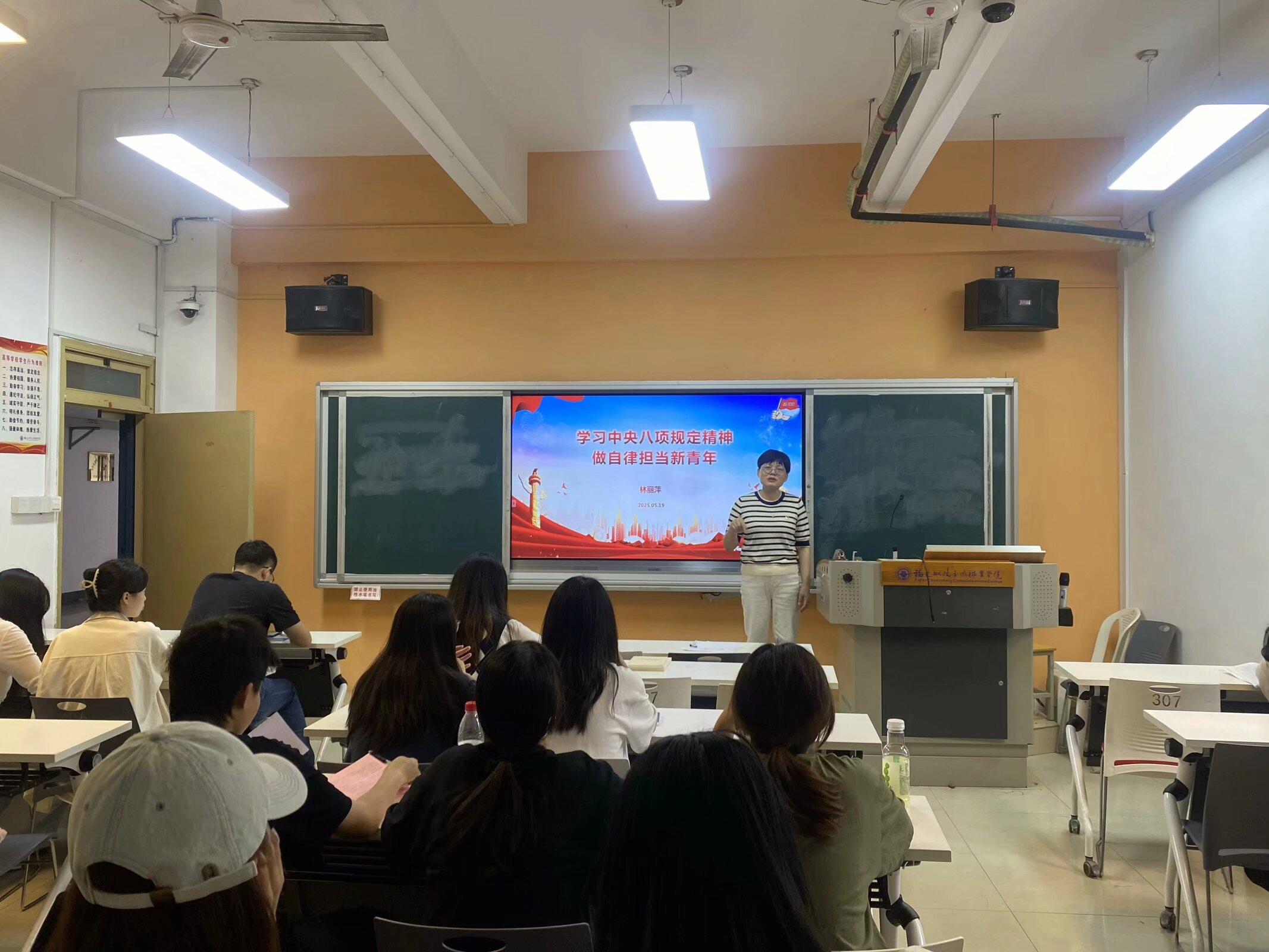 為深入貫徹落實(shí)中央八項(xiàng)規(guī)定精神,扎實(shí)推進(jìn)畢業(yè)生黨員廉潔教育走深走實(shí)。5月19日,經(jīng)濟(jì)與管理學(xué)院第一黨支部書記林麗萍以《學(xué)習(xí)中央八項(xiàng)規(guī)定精神 做自律擔(dān)當(dāng)新青年》為題,在求實(shí)樓406為全體畢業(yè)生黨員講授深入貫徹中央八項(xiàng)規(guī)定精神學(xué)習(xí)教育專題黨課。