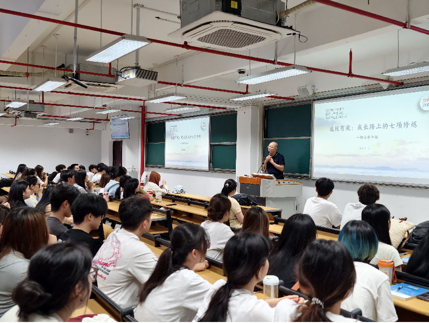 在主題分享環(huán)節(jié),鄭繼瀚校友結合自身職業(yè)發(fā)展軌跡,從多個維度為學弟學妹們傳授寶貴經驗。談及心態(tài)建設,強調保持樂觀、堅韌心態(tài)的重要性;在目標規(guī)劃方面,他講述自己從基層業(yè)務員做起,憑借清晰的職業(yè)目標,一步步實現(xiàn)個人價值的歷程,同時激勵同學們明確奮斗方向;針對時間管理,他分享了自己合理規(guī)劃工作與學習時間的方法,強調高效利用時間對個人成長的關鍵作用。此外,他還圍繞人際關系經營、持續(xù)學習進步、優(yōu)秀特質培養(yǎng)以及勇于嘗試改變等方面,結合企業(yè)管理和行業(yè)發(fā)展實際,深入淺出地展開講解。