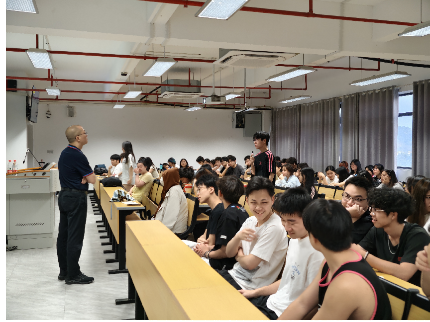 在互動交流環(huán)節(jié),現(xiàn)場氣氛熱烈。同學們踴躍提問,內容涵蓋關務與外貿服務專業(yè)的職業(yè)發(fā)展前景、行業(yè)技能提升路徑、職場人際關系處理等多個方面。鄭繼瀚校友耐心細致地逐一解答,結合自身經驗和行業(yè)發(fā)展趨勢,為同學們提供切實可行的建議。他鼓勵同學們珍惜在校時光,扎實學好專業(yè)知識,積極參加實踐活動,不斷提升自身綜合素質。