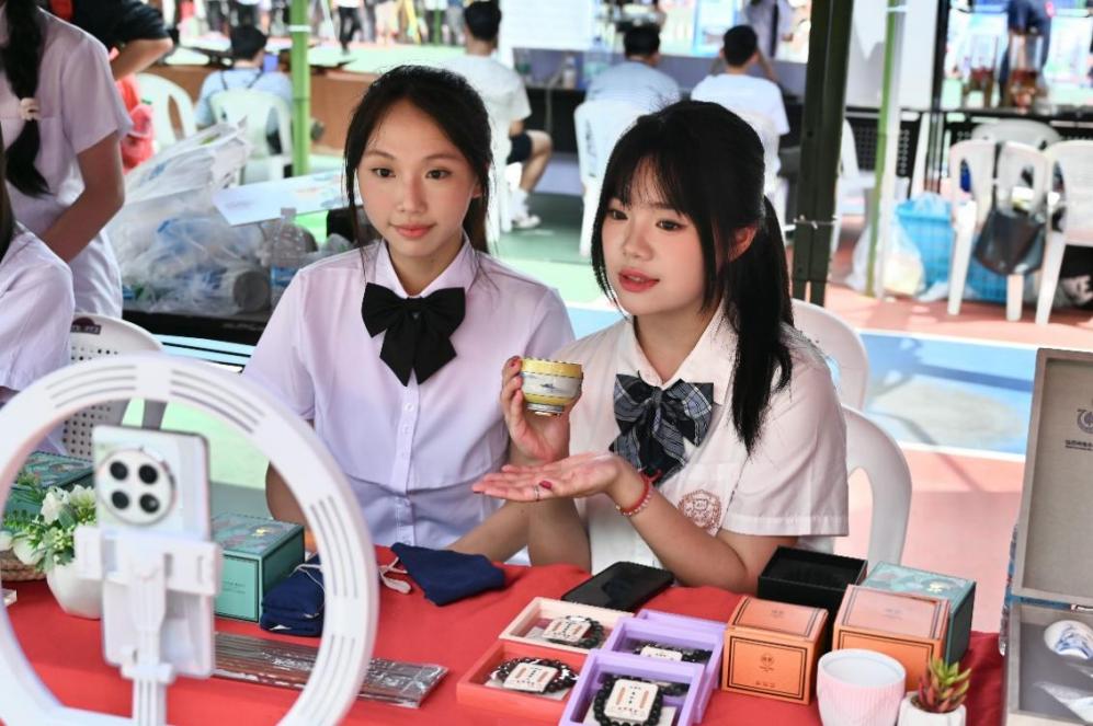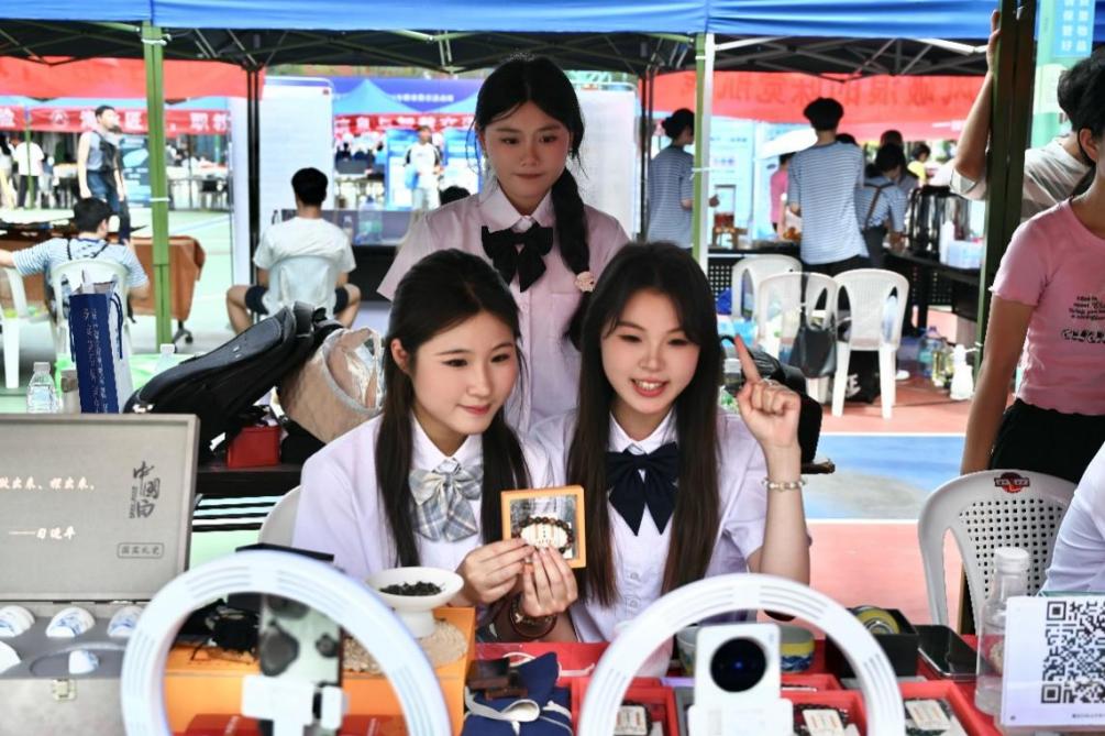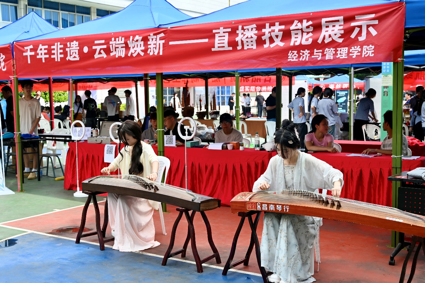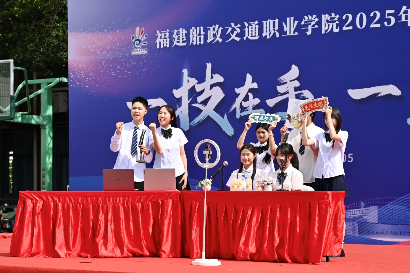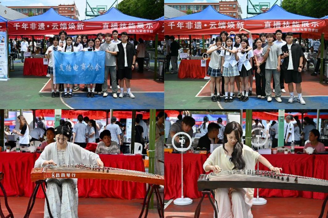 為積極響應(yīng)職業(yè)教育活動周號召,深化產(chǎn)教融合,提升學(xué)生實踐能力,5月17日在福道園文體中心前,經(jīng)濟與管理學(xué)院開展了“千年非遺?云端煥新——直播技能展示”2025年職教周活動。