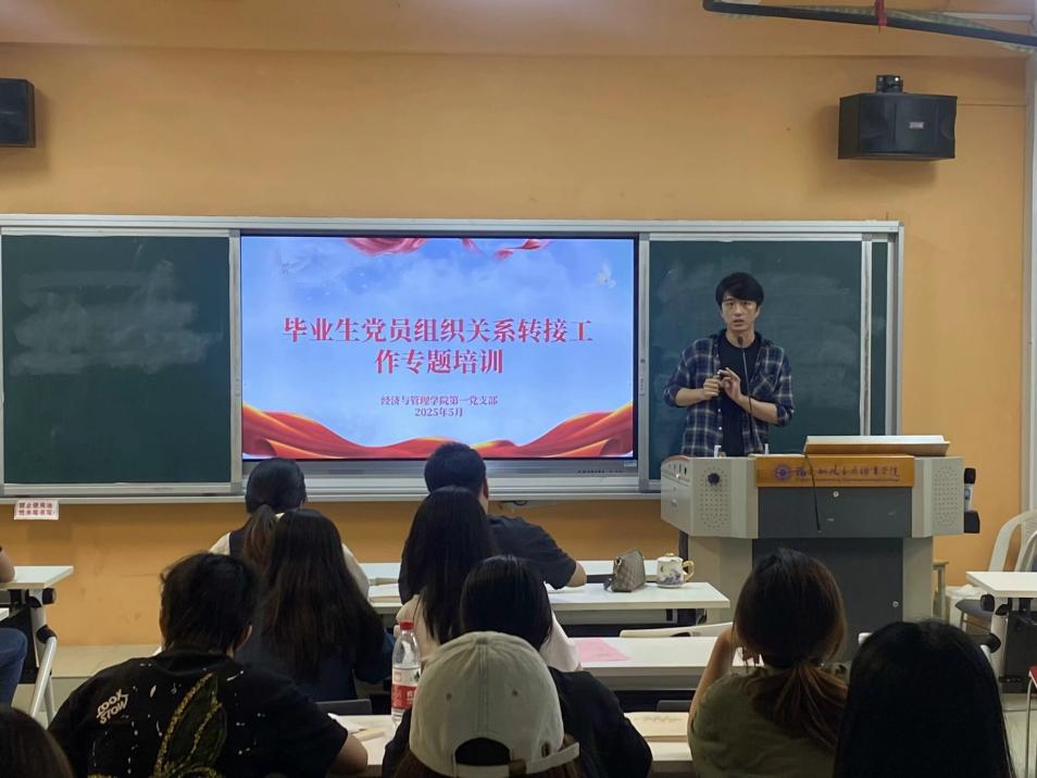 為進(jìn)一步筑牢畢業(yè)生黨員思想根基、強(qiáng)化使命擔(dān)當(dāng),引導(dǎo)畢業(yè)生黨員走好人生第一步,經(jīng)濟(jì)與管理學(xué)院第一、第二黨支部以習(xí)近平新時(shí)代中國(guó)特色社會(huì)主義思想為指導(dǎo),全面貫徹落實(shí)黨的教育方針與中央八項(xiàng)規(guī)定精神,面向2025屆畢業(yè)生黨員創(chuàng)新開(kāi)展"八個(gè)一"系列活動(dòng)。通過(guò)系統(tǒng)化黨性錘煉工程,引導(dǎo)畢業(yè)生黨員堅(jiān)定理想信念、砥礪責(zé)任意識(shí),以昂揚(yáng)奮進(jìn)的姿態(tài)投身社會(huì)建設(shè),為開(kāi)啟人生新征程注入紅色動(dòng)能,在服務(wù)國(guó)家發(fā)展中彰顯青年黨員的擔(dān)當(dāng)力量。