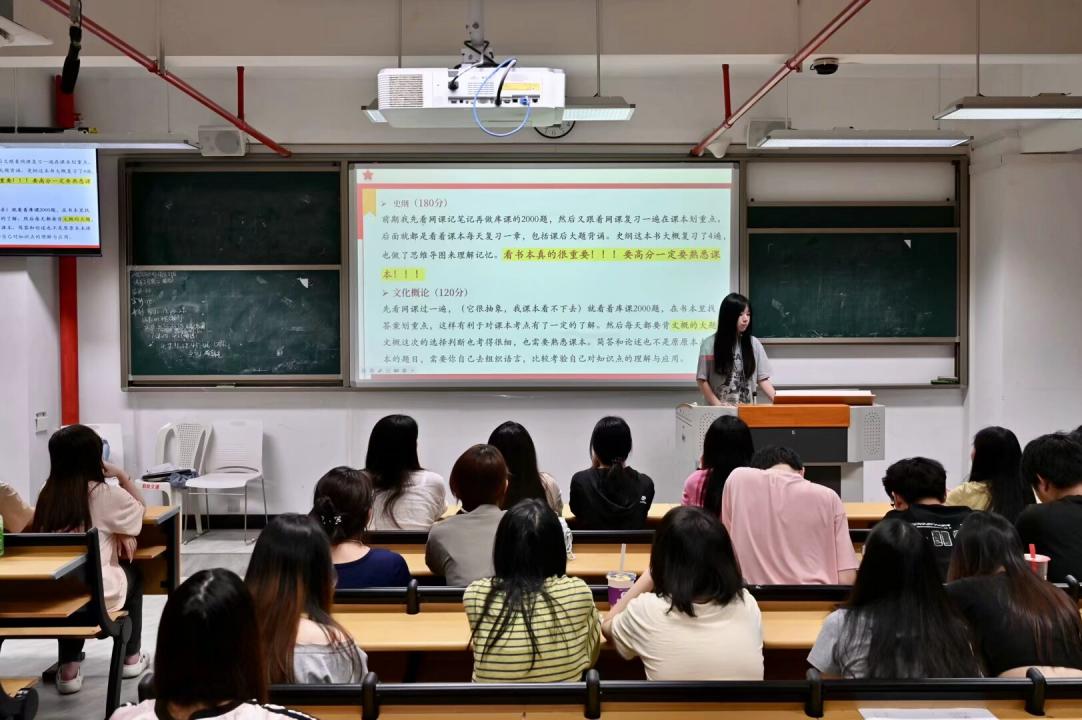 畢業(yè)生黨員代表鄭欣怡、國(guó)家獎(jiǎng)學(xué)金獲得者汪煜茹,分別將自己的專(zhuān)升本學(xué)習(xí)經(jīng)驗(yàn)和技巧傾囊相授,他們以自身學(xué)習(xí)成長(zhǎng)經(jīng)歷為藍(lán)本,引導(dǎo)同學(xué)們重視學(xué)業(yè)規(guī)劃,盡早做好職業(yè)生涯的長(zhǎng)期規(guī)劃,為學(xué)弟學(xué)妹的生涯規(guī)劃點(diǎn)亮明燈。